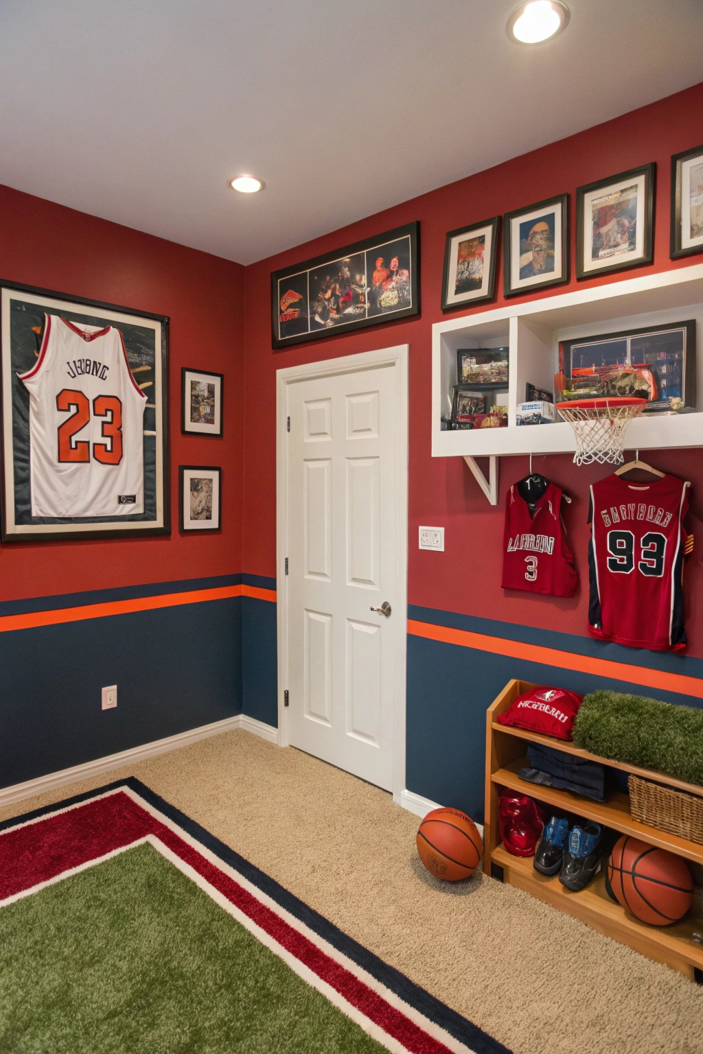 Infusing a sports motif into the bedroom can invigorate the atmosphere while celebrating your favorite teams or athletes. Opt for vibrant hues inspired by team colors and adorn walls with framed jerseys or action shots. Incorporate elements like turf-style rugs, a mini basketball hoop on the door, or display shelves for trophies and collectibles. This sporty environment not only motivates but also reflects your passion for athletics. Explore sports room decor for fresh ideas.
