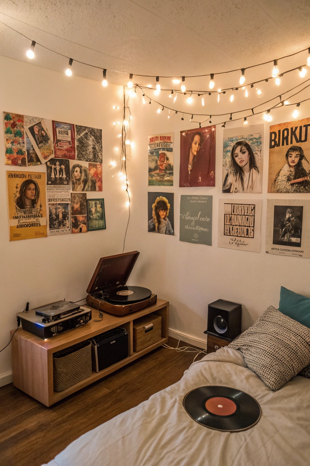 Music often fuels creativity and motivation, making a music-themed bedroom a perfect sanctuary. Decorate with framed album art, posters of favorite bands, and soft string lights to create a warm ambiance. Adding a record player or a quality Bluetooth speaker can fill the room with your preferred tunes, inspiring your imagination daily. For audio equipment, browse Bluetooth speakers on Amazon.