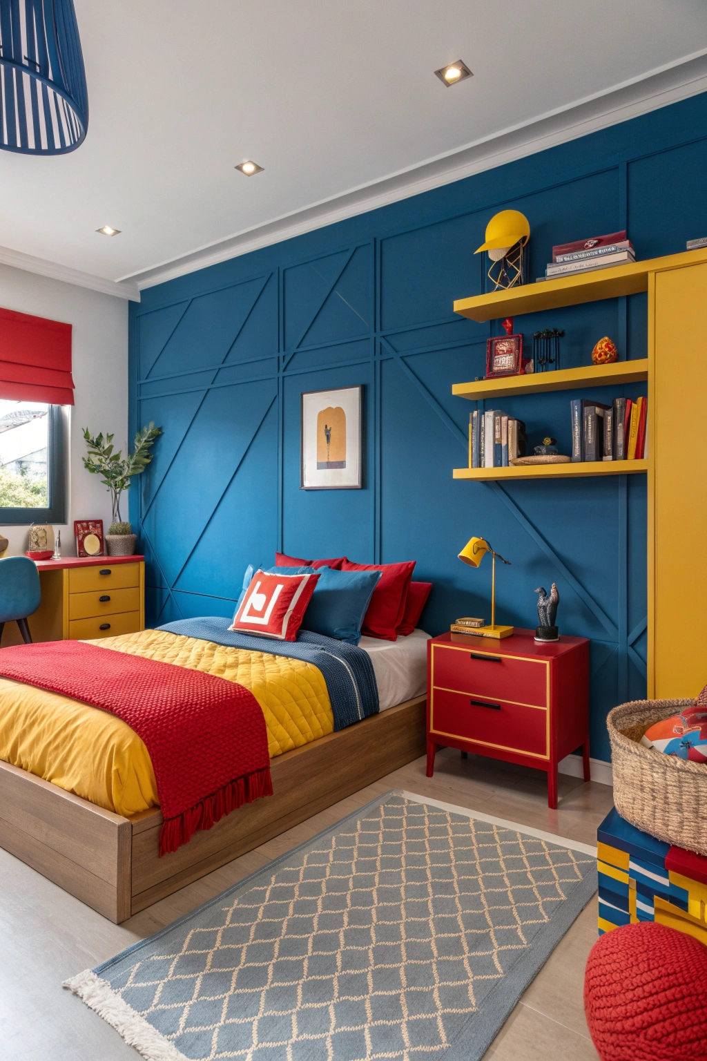 Incorporating bold and lively colors can breathe life into a teenager’s bedroom, reflecting their distinct personality. Consider striking shades like electric blue, sunny yellow, or fiery red to create an energetic environment. Mix these hues across furniture, bedding, and decorative accents for visual interest. A daring accent wall can serve as a captivating centerpiece that perfectly captures your teen’s style. Discover accent wall paints to get started.