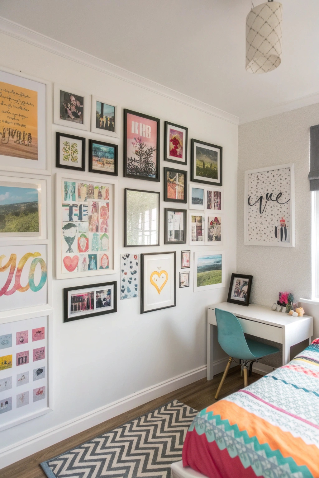 Highlighting your teen’s artistic talents through a DIY art gallery adds a personal and dynamic touch. Create a rotating display using frames, clipboards, or wire with clips to showcase their latest creations. This evolving gallery keeps the room lively and celebrates their creativity in a unique way.