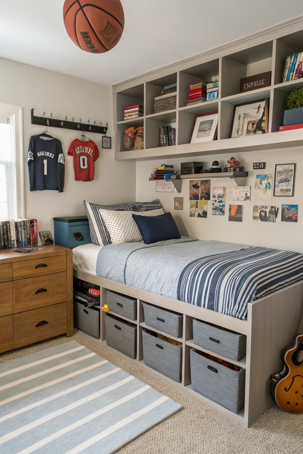 Smart storage is essential for maintaining an organized and clutter-free bedroom. Utilize under-bed bins for off-season clothes or sports equipment. Wall-mounted shelves can showcase books, memorabilia, and photos. Multifunctional furniture like beds with drawers or desks with built-in shelving optimizes space while keeping essentials within reach.