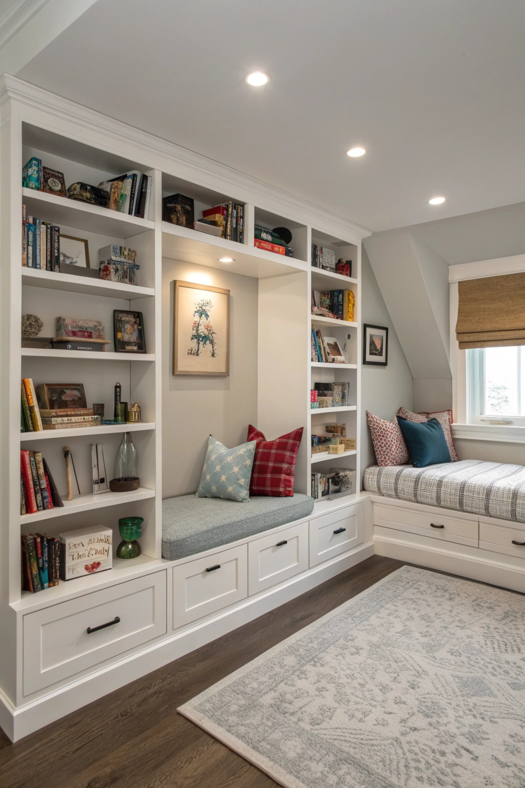 Built-in bookshelves are a smart way to optimize space and add sophistication. They free up floor area while providing ample room for books, collectibles, and decorative items. Customizable to fit any room design, these shelves also create a cozy nook perfect for reading and unwinding.