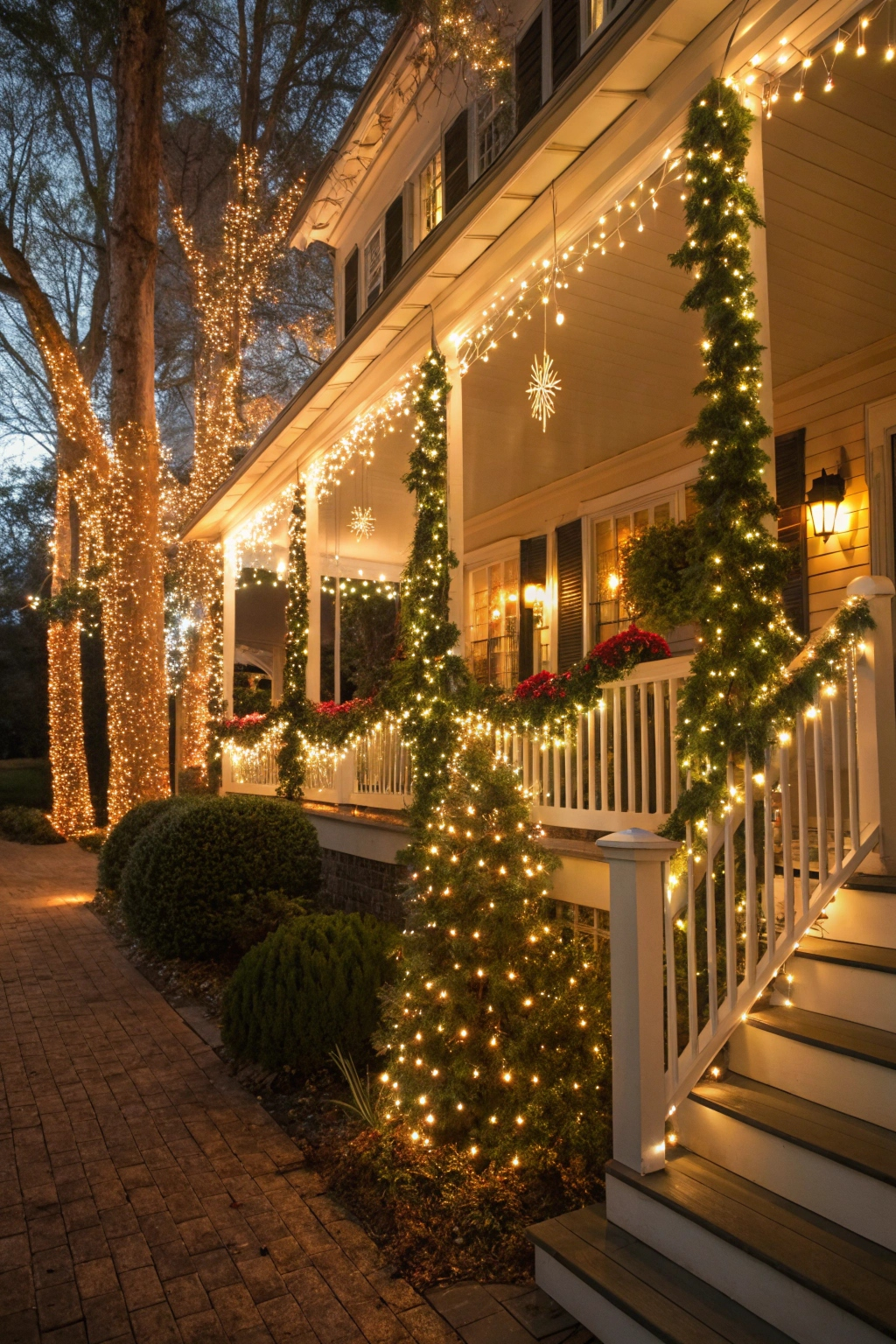 - Weave lights along banisters and railings.