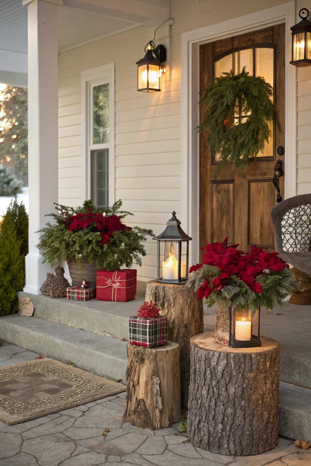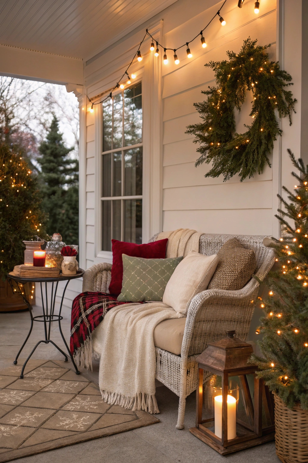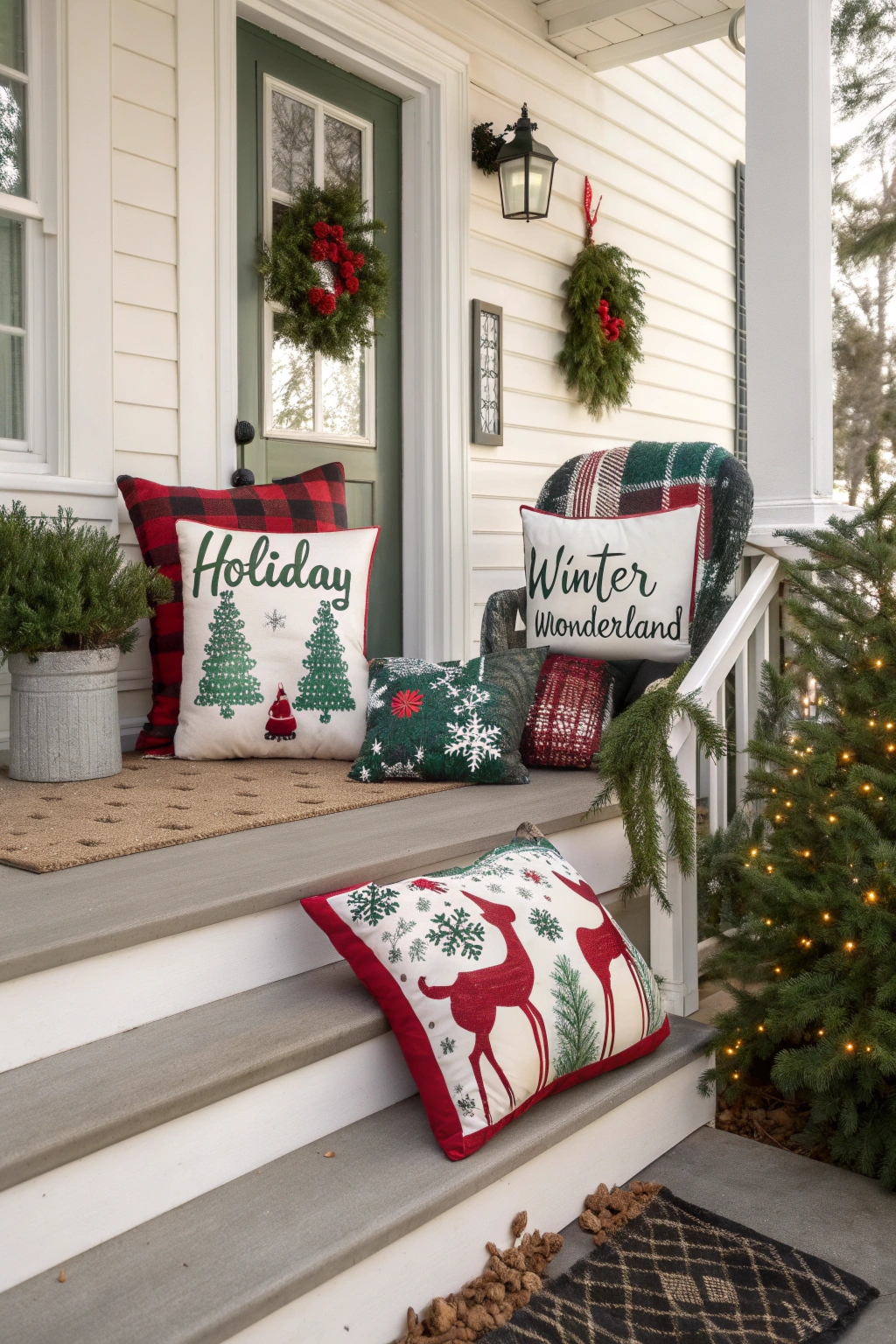 Designing a snug seating area on your porch encourages relaxation and holiday connection. Consider incorporating: