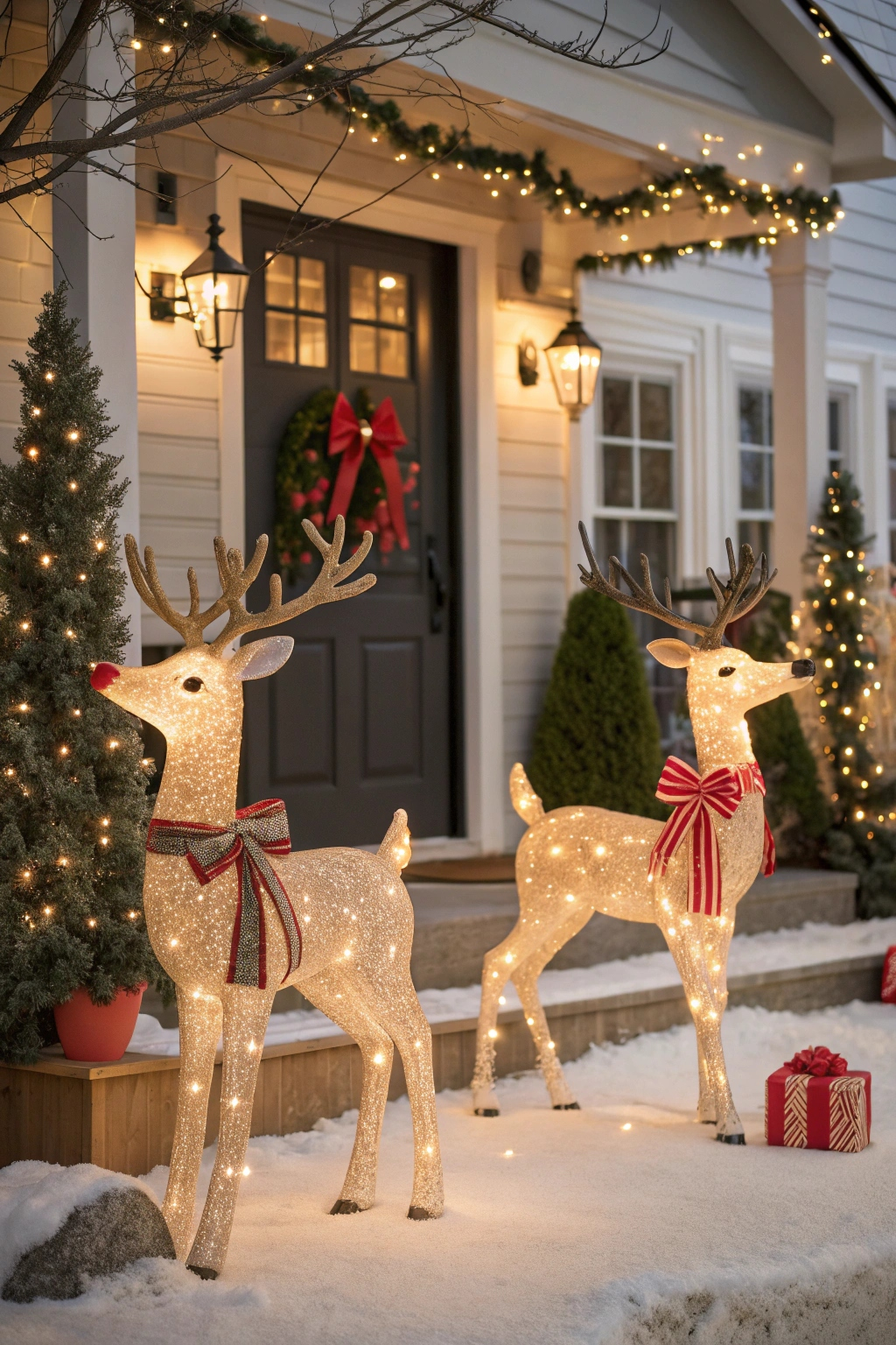 Reindeer figures bring a whimsical and joyful element to your porch. Choose from life-sized sculptures, charming miniatures, or illuminated versions that sparkle after dark. Position them near your entrance or integrate them into larger festive displays to create a welcoming and playful holiday scene.