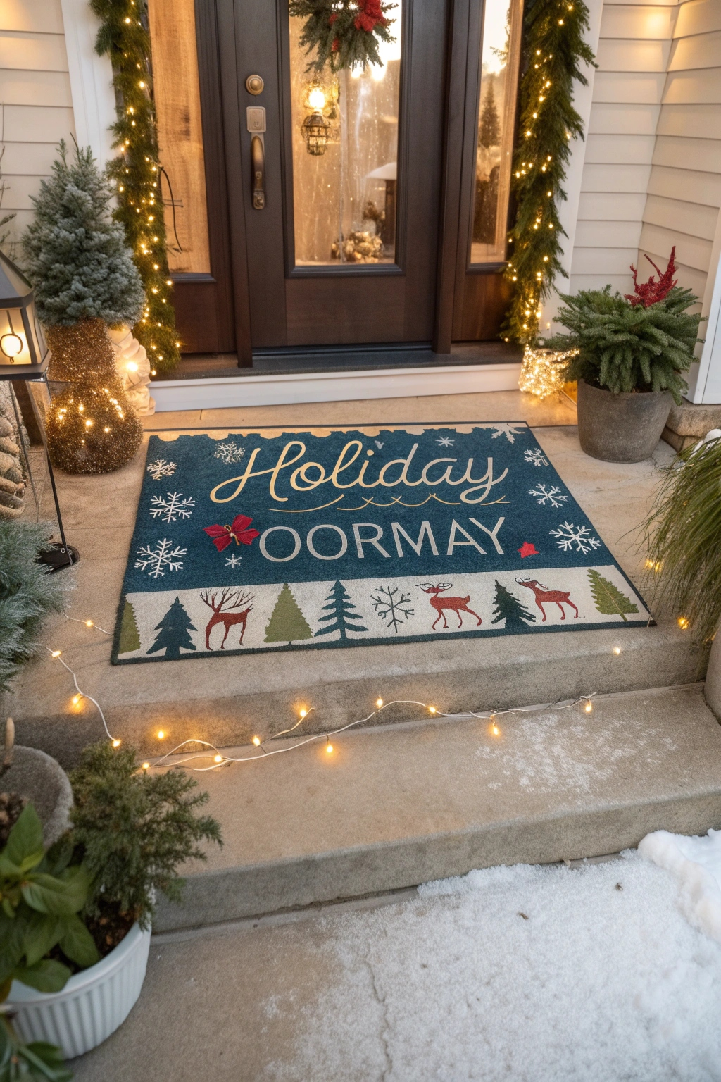 Set the tone for your holiday décor with a cheerful doormat. Select mats featuring seasonal motifs such as snowflakes, holiday greetings, or festive animals. Ensure your mat is durable and weather-resistant to withstand winter conditions. A well-chosen welcome mat invites guests to step into your festive world with warmth and joy.