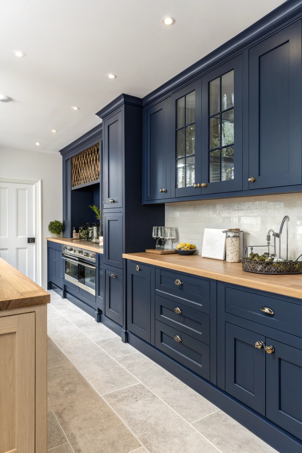 For those seeking a bold yet refined look, navy blue cabinets offer a sophisticated focal point. This rich shade harmonizes beautifully with both light and dark elements, such as warm wooden countertops or sleek metal fixtures. Navy’s calming influence combined with its visual strength makes it a versatile choice that adds depth and character to your kitchen.
