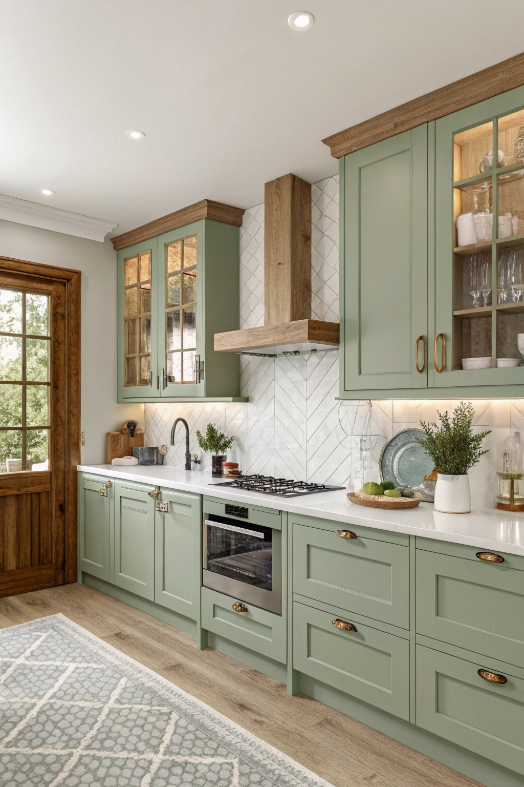 Soft sage green cabinets infuse your kitchen with a tranquil, organic vibe reminiscent of a peaceful garden. This gentle color pairs wonderfully with warm wood tones and crisp white surfaces, creating a harmonious and refreshing space. Sage green is perfect for those who want their kitchen to feel like a serene retreat.