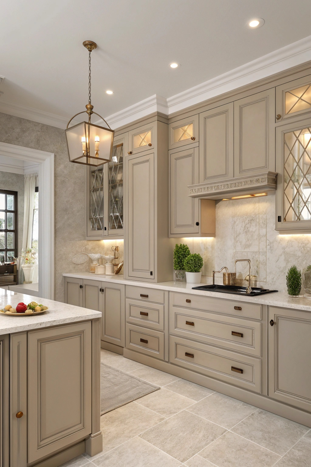 Chic taupe offers a warm, neutral backdrop that complements a wide range of design aesthetics. Its versatility allows for easy pairing with both bold and subtle accents, making it ideal for creating a serene and sophisticated kitchen atmosphere. Taupe cabinetry provides a timeless foundation for your decor.