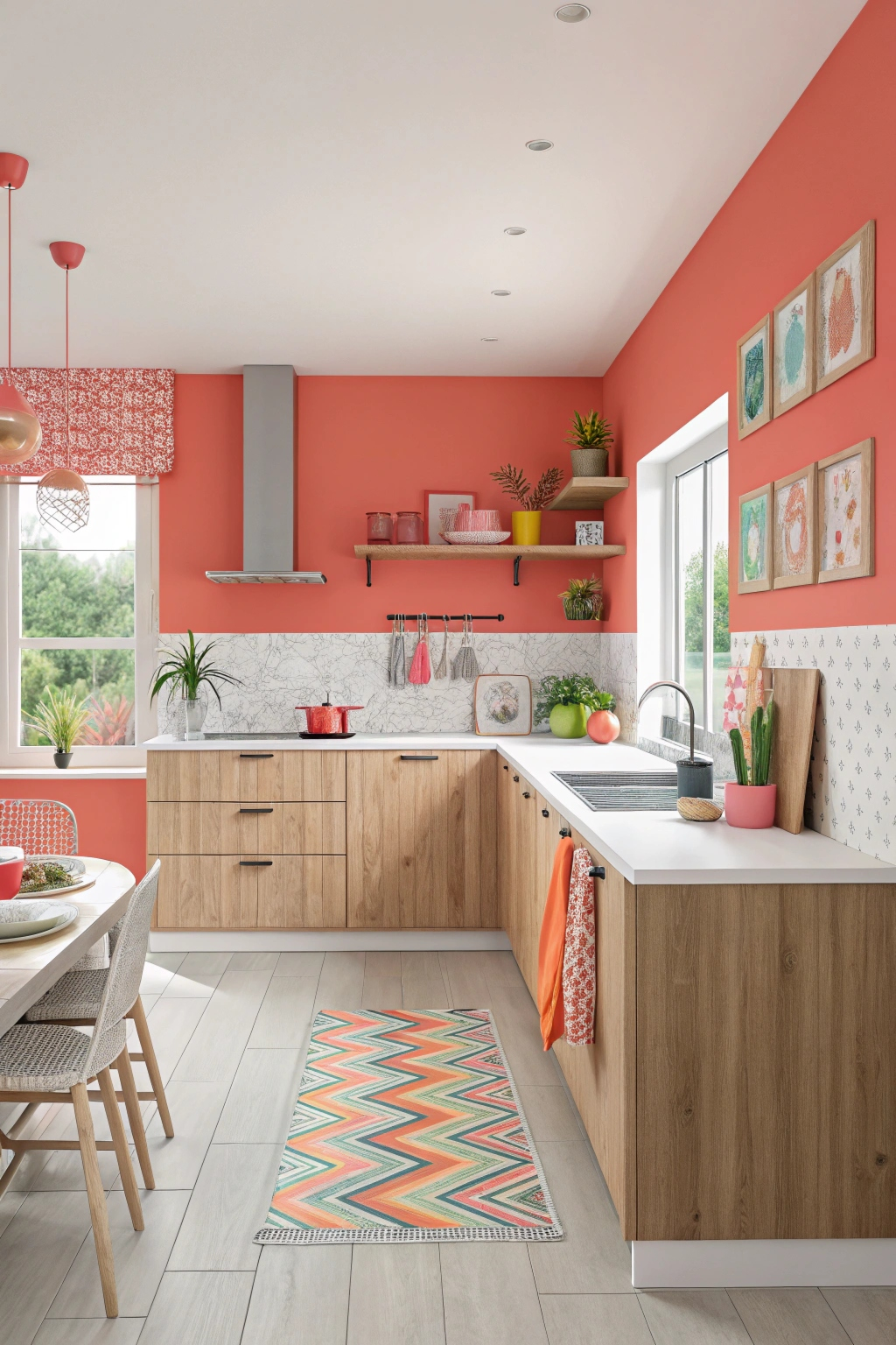 Bright coral cabinets inject a lively burst of energy, perfect for those wanting to enliven their kitchen. This cheerful hue works well with white countertops, natural wood accents, and playful accessories. Strategic lighting can further enhance coral’s vibrancy, making your kitchen a joyful gathering spot.