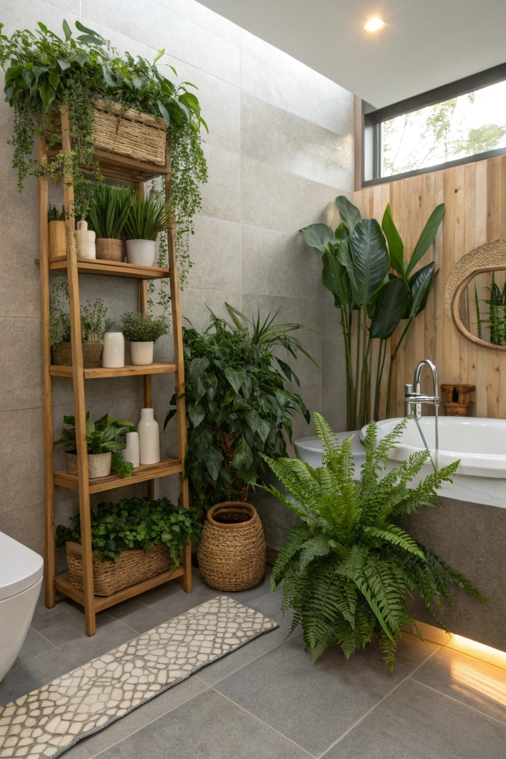 Introducing indoor plants breathes life and freshness into your spa bathroom. Opt for resilient varieties like spider plants, pothos, or ZZ plants that thrive in humid conditions. Arrange them on shelves, in hanging planters, or on window sills. These natural accents not only purify the air but also contribute to a calming, restorative environment.