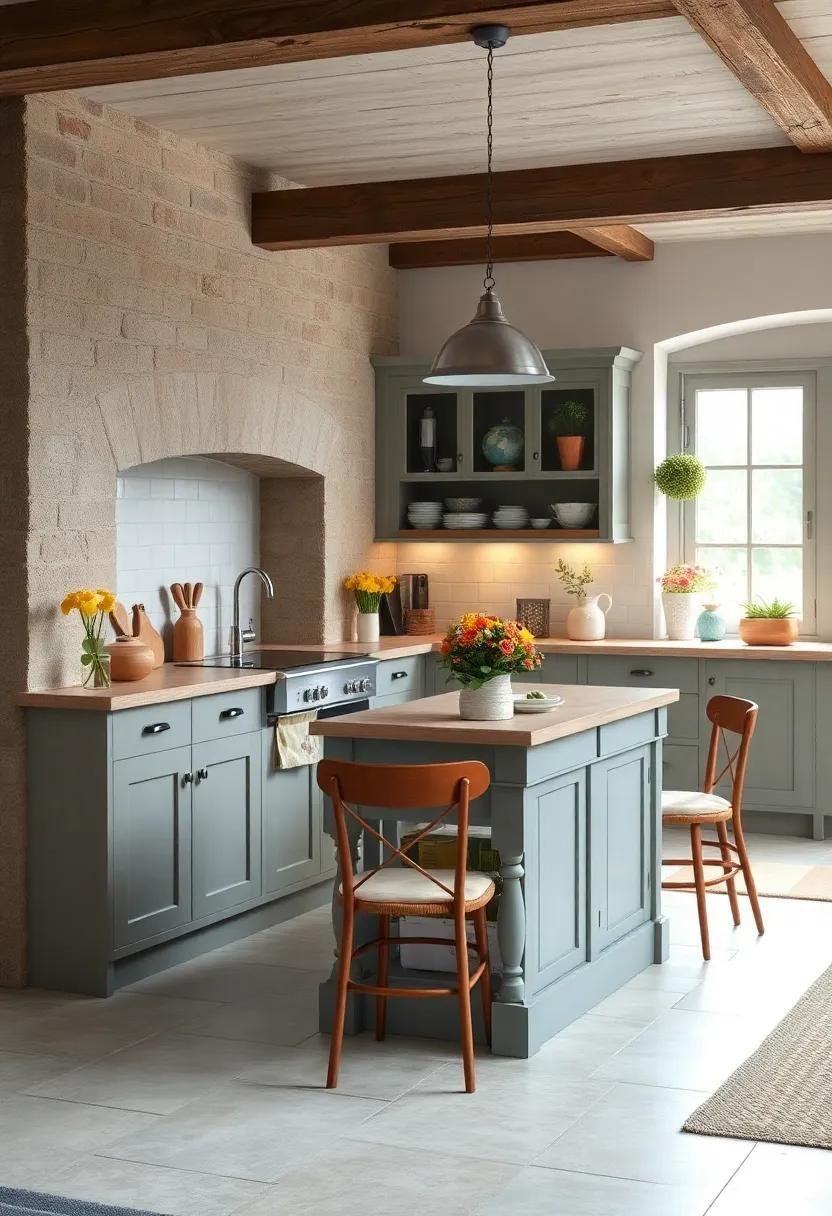 Country-Style Stools: Add country-style stools at the counter for casual seating while enjoying a cup of tea or a quick snack
