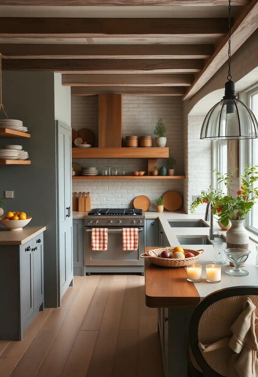 - Reclaimed Wood: Use salvaged timber for shelving or countertops that tells a story.