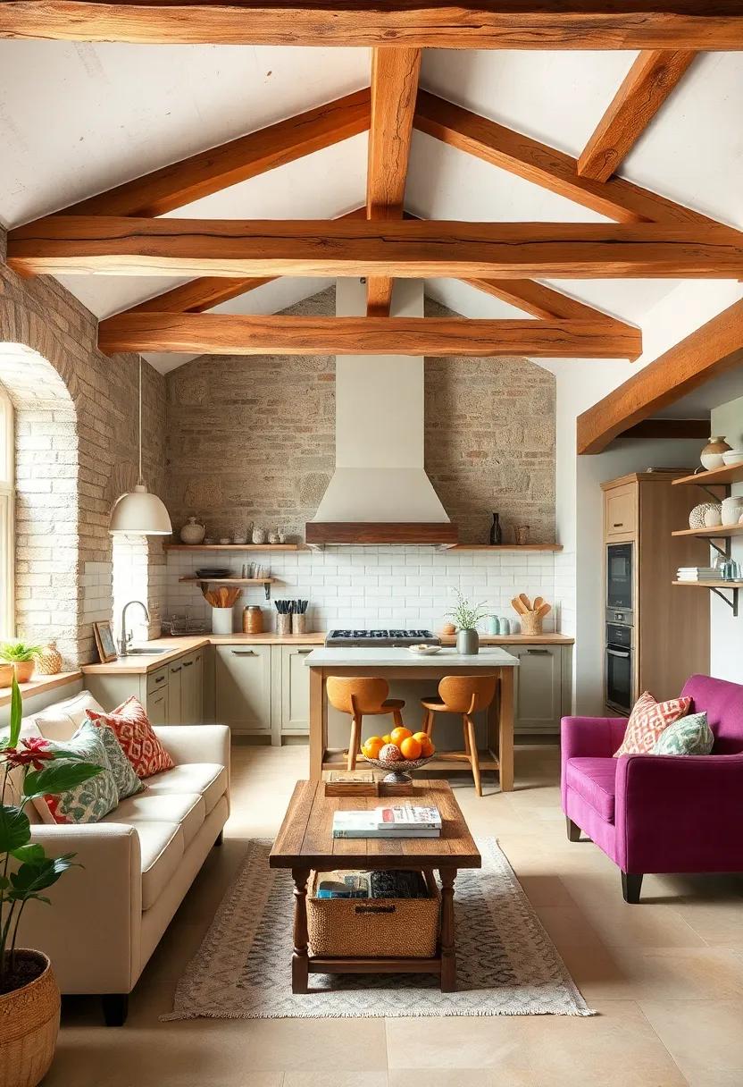 - Contrasting Materials: Pair wood beams with stone or brick walls to create a stunning visual contrast.