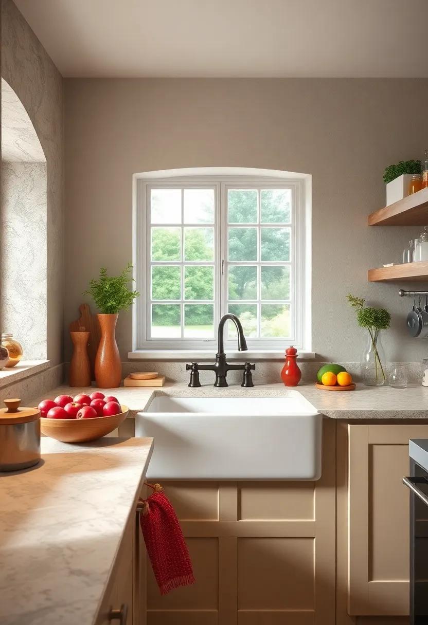 Farmhouse Sink: Opt for a large, deep farmhouse sink to create a practical yet stylish focal point ready for culinary adventures