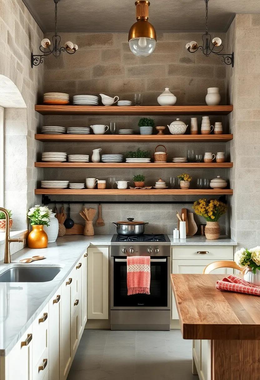 Open shelving instantly transforms your kitchen into an inviting space, where every dish tells a story. Embrace the charm of displaying your favorite crockery and glassware, turning mundane storage into a delightful showcase. Choose rustic wooden shelves that complement your kitchen’s color palette or opt for sleek metal racks for a modern touch. Arrange your pieces thoughtfully, mixing colorful ceramics with elegant glassware to create a visual feast.Consider hanging some shelves at varying heights for a dynamic look that captures the essence of a cozy cottage.
