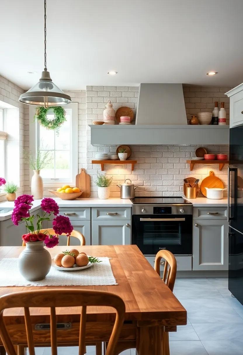 To enhance this inviting space, adorn the table with natural elements and thoughtful decor. A simple floral arrangement in a vintage pitcher can bring a splash of color, while handwoven placemats add texture and interest. Consider incorporating a seasonal centerpiece, such as a wooden bowl filled with fresh fruits or a collection of potted herbs that not only beautifies but also provides ingredients for your culinary creations. This engaging atmosphere encourages cooking as a shared experience, fostering togetherness and joy in the heart of the home.