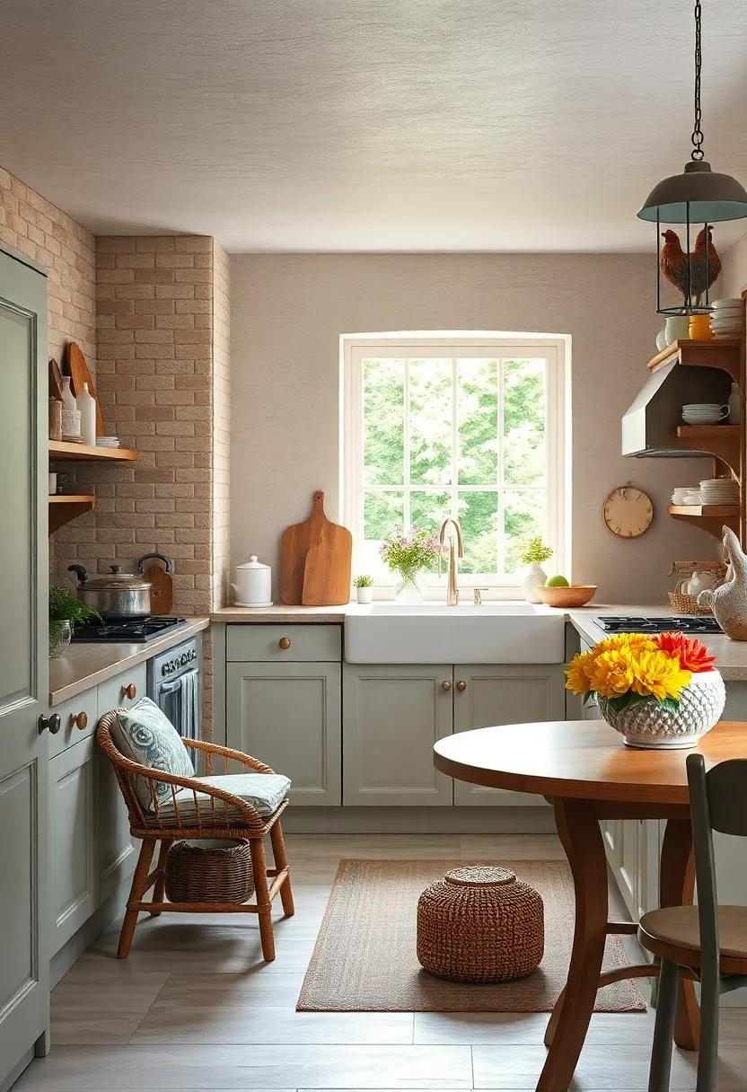 To evoke an inviting country charm in your kitchen, consider incorporating subtle farmyard elements that bring a sense of authenticity to your space. Rooster motifs can be especially delightful; whether through decorative plates, wall art, or even linens, they serve to remind us of the rustic simplicity of cottage living. Additionally, explore animal-themed décor like sheep or pigs that can add a touch of character without overwhelming the design. These motifs can be woven into various aspects of your kitchen, from dishware to textiles, creating a cohesive and warm environment.