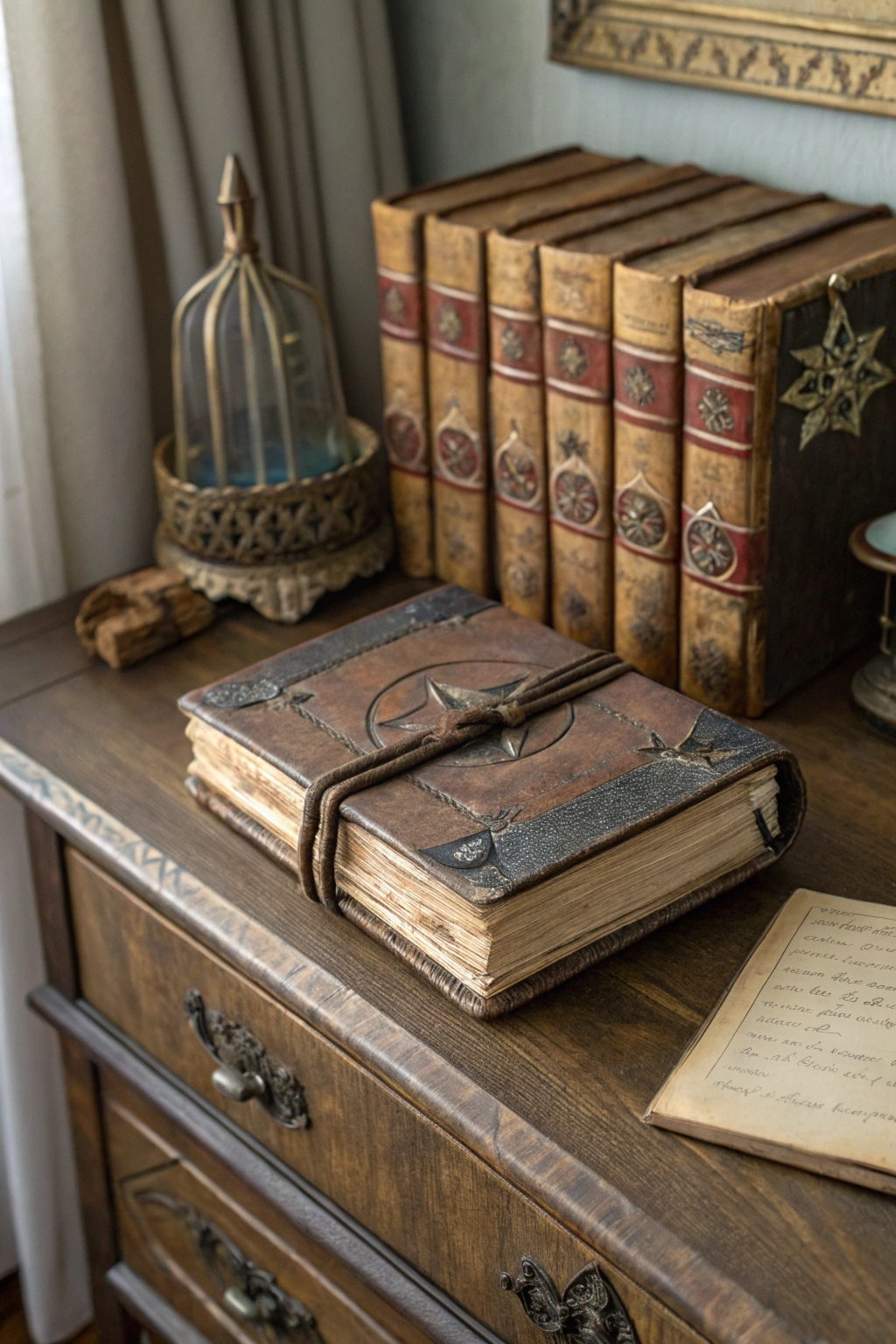 Incorporate vintage spellbooks to add authenticity and charm. Display them stacked on nightstands or arranged on shelves. Seek out volumes with weathered covers and yellowed pages to enhance the mystical vibe. Use ornate bookends to keep them organized, creating a captivating focal point that invites inspiration and magic.