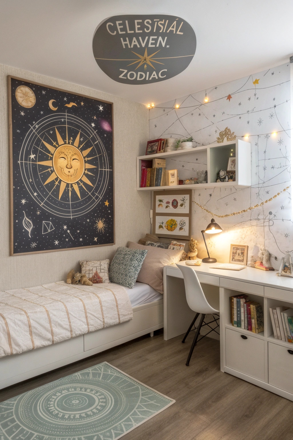 Integrate astrological prints to infuse your room with cosmic energy and personal symbolism. Ideas include: