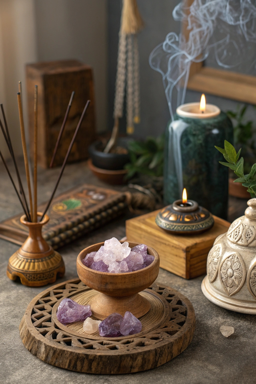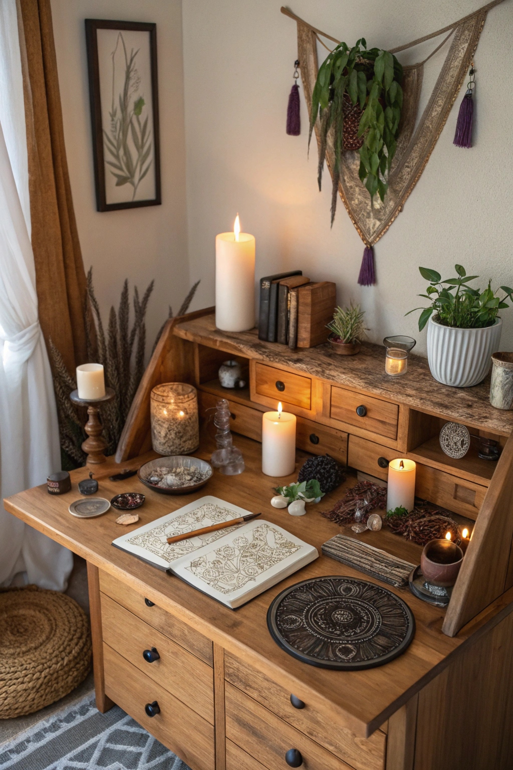 These elements foster a serene, grounded atmosphere that complements your witchy aesthetic.
