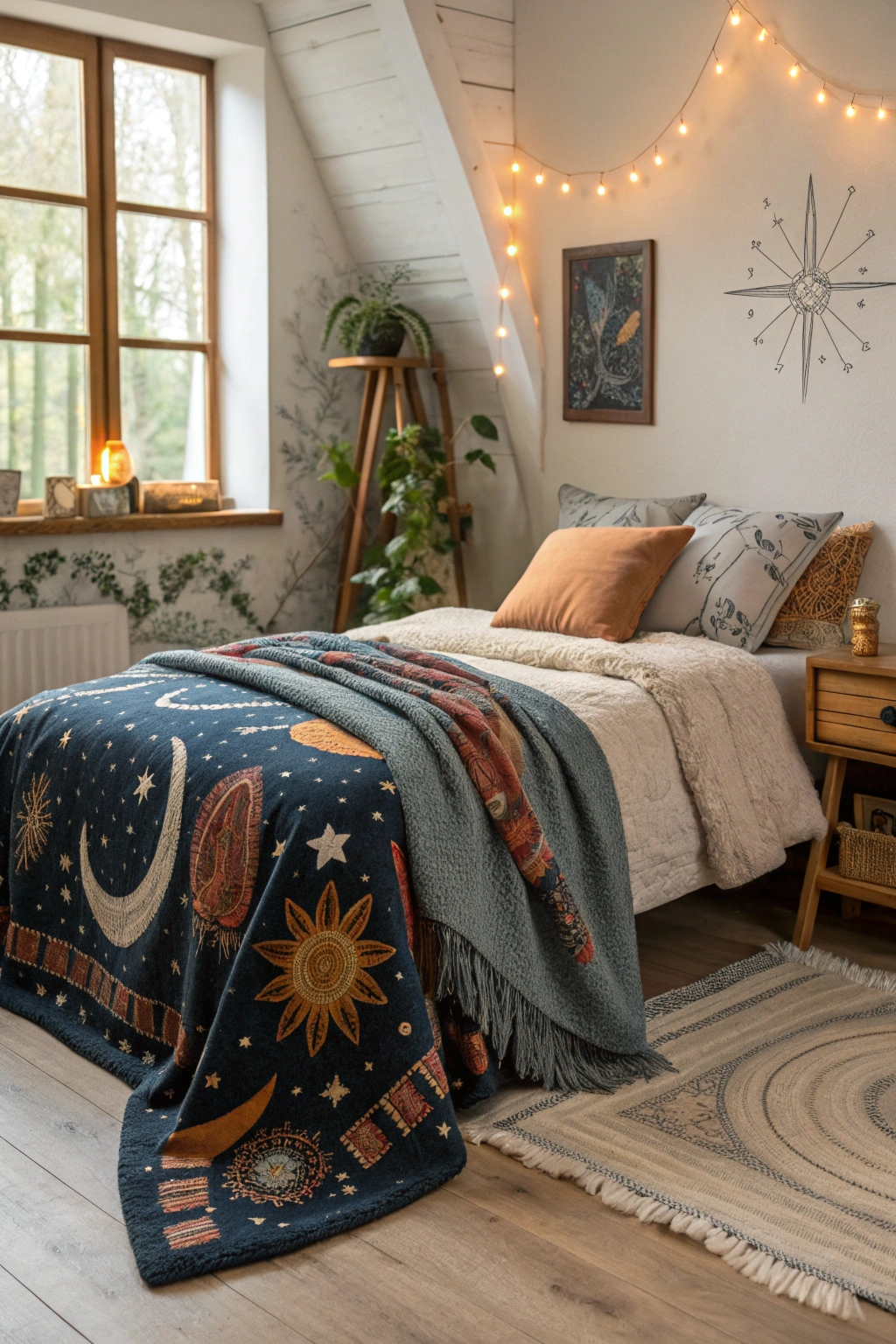 - Tapestry-style throws with celestial motifs