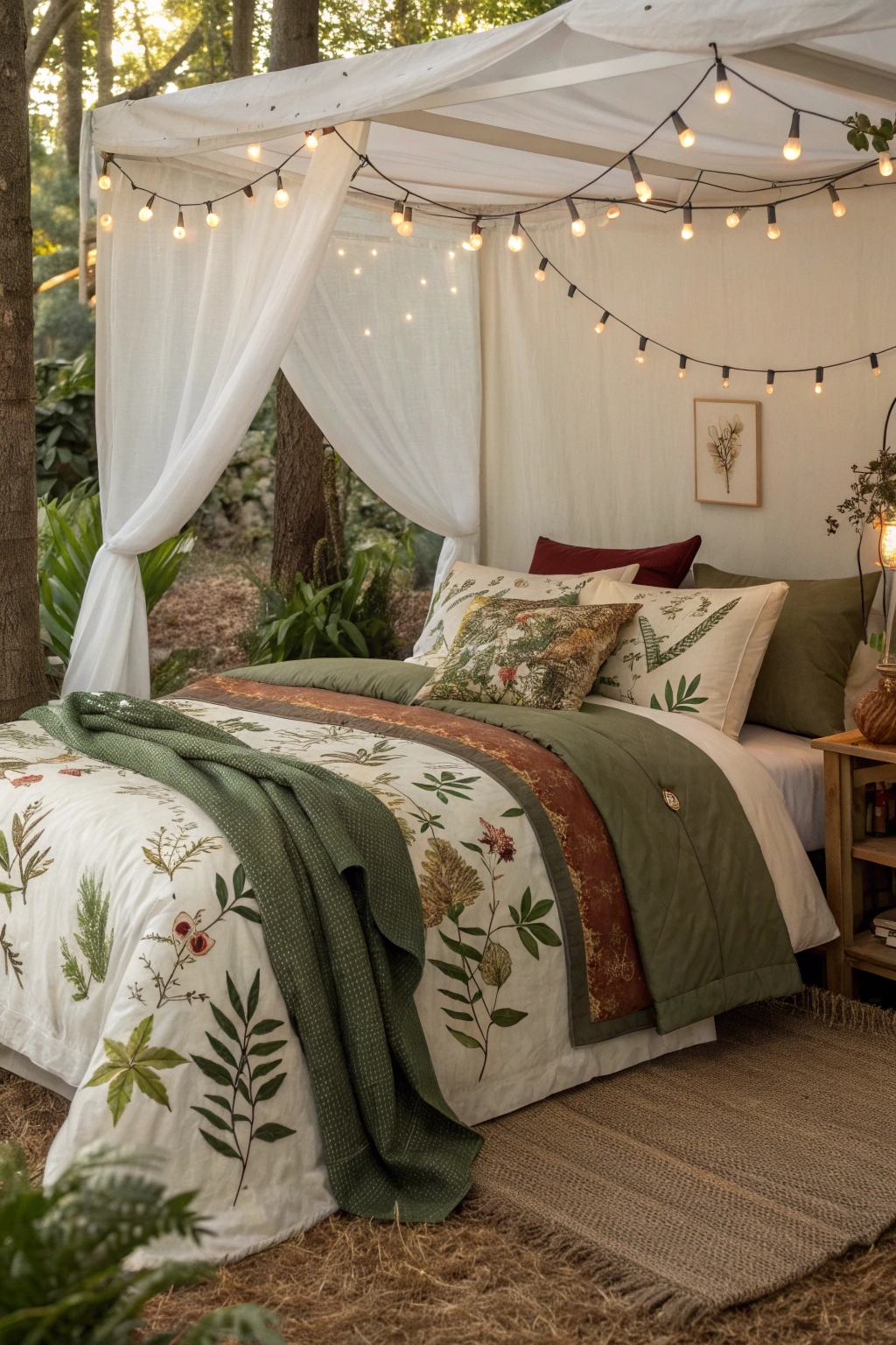 Bring the outdoors inside with bedding inspired by natural elements. Choose earthy hues like forest green, warm browns, and soft creams. Opt for organic fabrics adorned with leaf or floral patterns to foster a calming, grounded atmosphere. Layer with cozy throws and embroidered pillows to complete the enchanting look.
