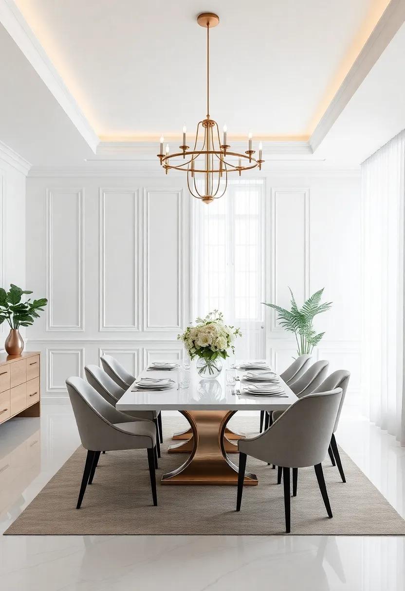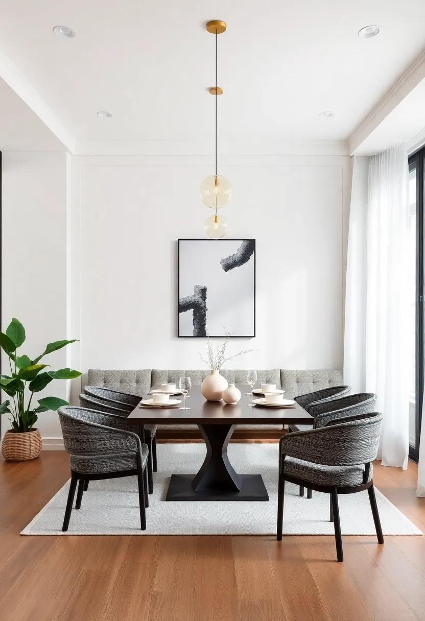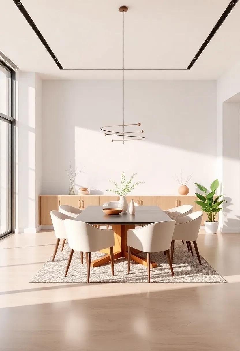 A Modern Minimalist Retreat: Sleek lines and a neutral palette create a tranquil dining space that embodies serenity and sophistication