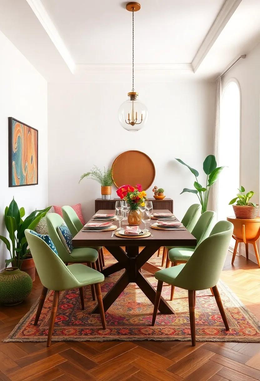 Transform your dining space into a vibrant sanctuary where eclectic patterns and bold colors harmonize with organic textures. Imagine a table set against a backdrop of hand-painted tiles and layered textiles, where each element tells a unique story. Incorporate a mix of patterned tableware alongside natural wood accents and woven baskets, creating an inviting atmosphere that celebrates creativity. Bold jewel tones such as emerald green, deep sapphire, and warm terracotta can be paired with lively prints that reflect a free-spirited lifestyle, making every meal feel like a joyful gathering.