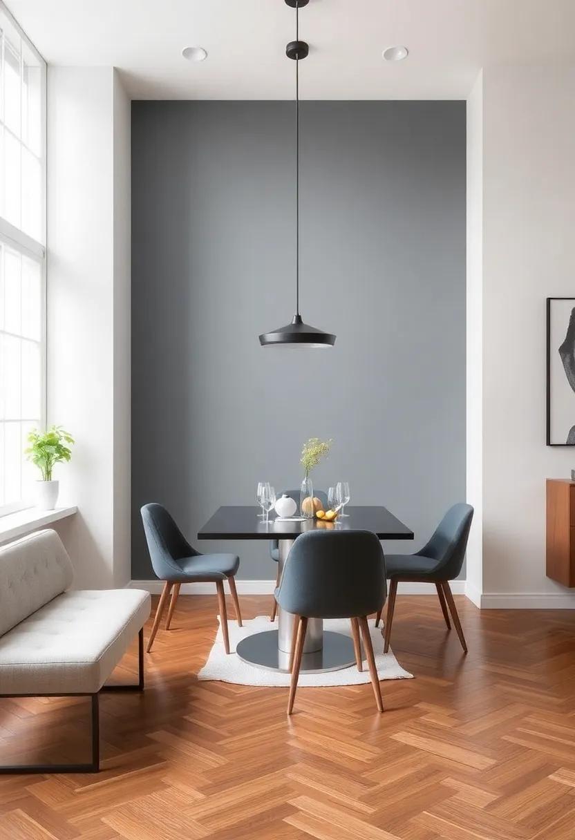 Inviting understated Nordic elegance into your dining space creates a peaceful retreat from the bustling world outside. Imagine a canvas of soft whites, gentle greys, and subtle pastels that blend effortlessly, establishing an atmosphere characterized by tranquility and grace. Each wall could be adorned with a light hue that reflects natural light, while the dining table, crafted from warm natural wood, adds an organic touch that brings the outside in. To amplify this serene vibe, incorporate minimalist accessories, such as ceramic tableware in muted tones or delicate glass vases that house simple, seasonal blooms.