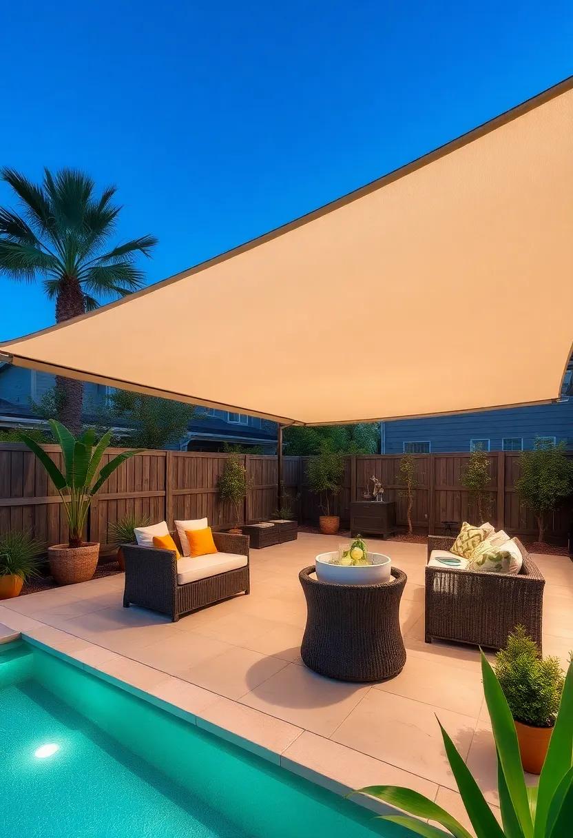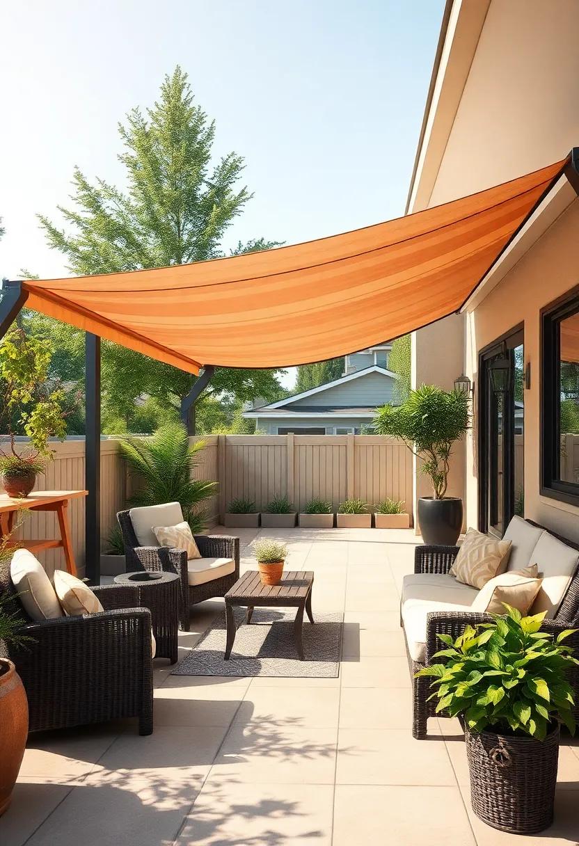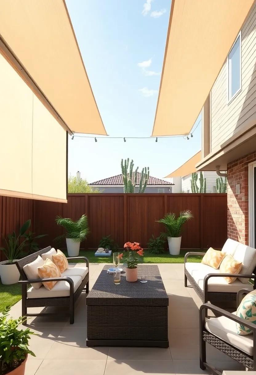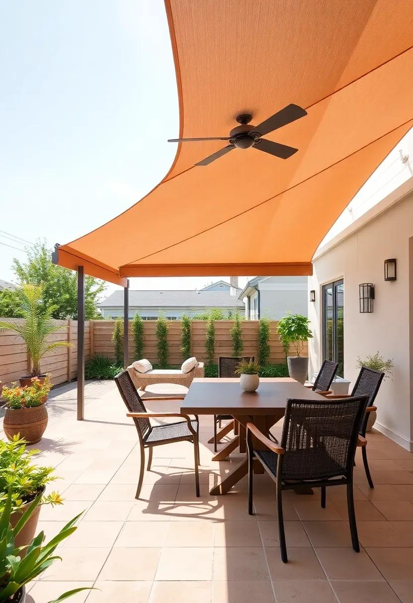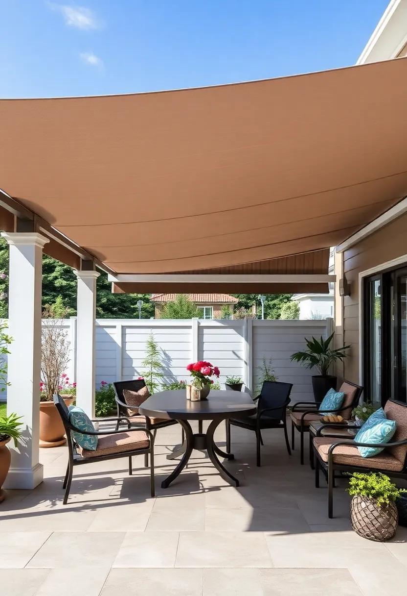 Incorporating sunshade sails also offers versatility—adjust their placement throughout the seasons to optimize shade as the sun shifts. Experiment with varying heights to create a more dynamic atmosphere; higher sails can encourage air circulation while lower ones provide cozy enclaves for intimate gatherings. Don’t forget to mix-in other decorative elements such as potted plants or outdoor art, transforming your patio into a serene retreat that tantalizes the senses and invites relaxation.