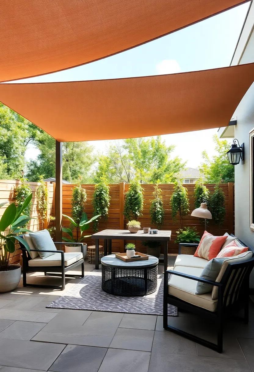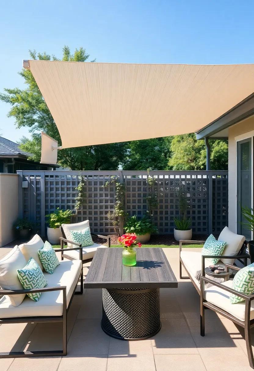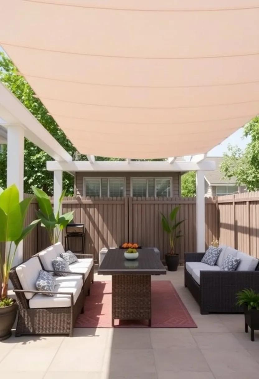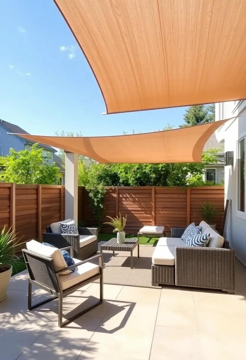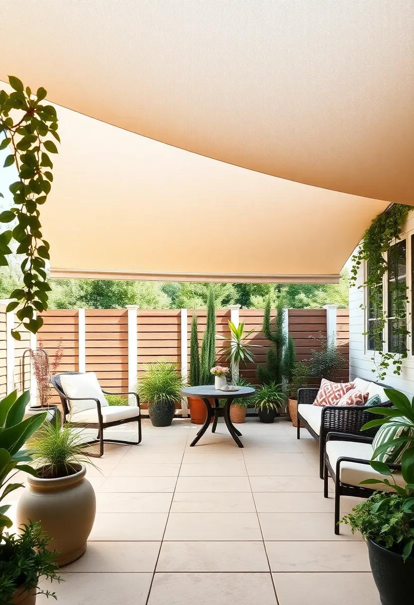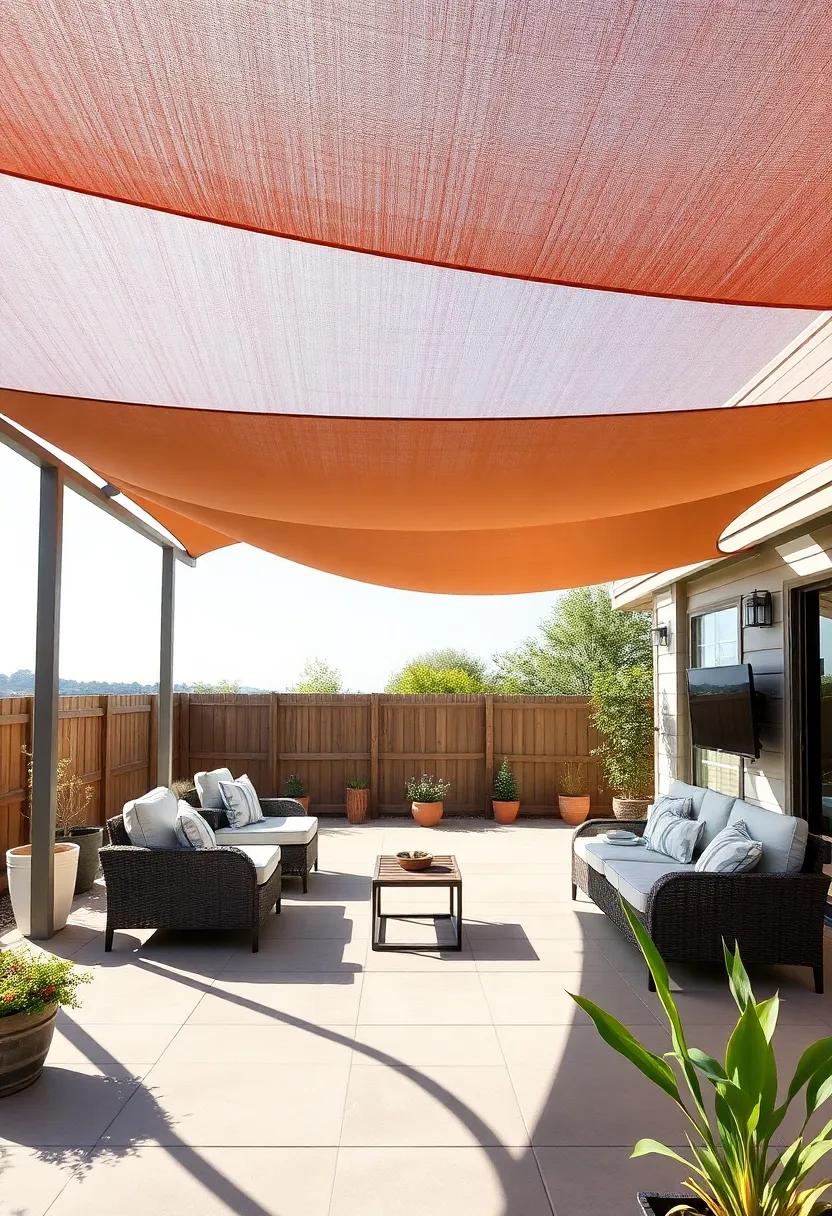 Incorporating sunshade sails also offers versatility—adjust their placement throughout the seasons to optimize shade as the sun shifts. Experiment with varying heights to create a more dynamic atmosphere; higher sails can encourage air circulation while lower ones provide cozy enclaves for intimate gatherings. Don’t forget to mix-in other decorative elements such as potted plants or outdoor art, transforming your patio into a serene retreat that tantalizes the senses and invites relaxation.