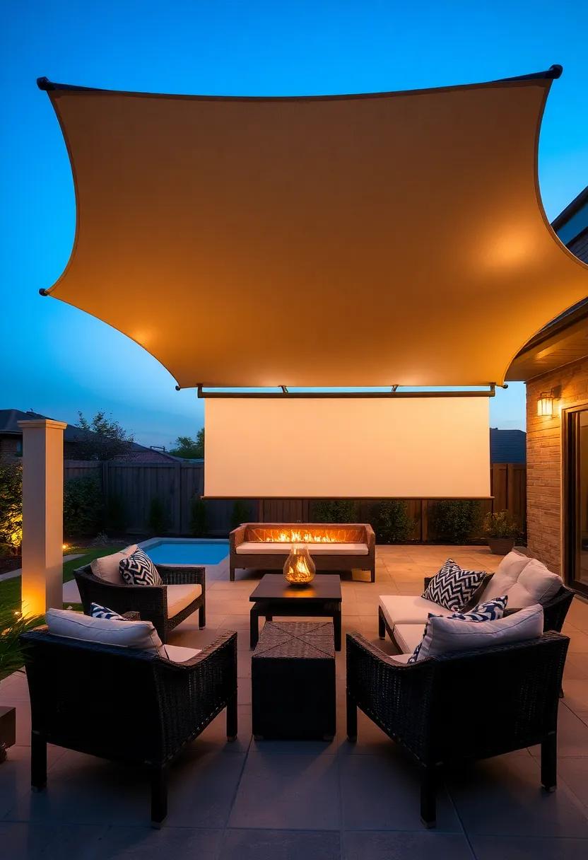 Transform your backyard into a cinematic wonderland by seamlessly integrating a retractable shade feature with a projector setup. With the right arrangement, you can create a cozy nook that invites friends and family to gather under the stars for unforgettable film nights. Consider using a motorized retractable awning that can be opened or closed at the touch of a button, providing shade during the day and a comfortable viewing experience at night. You can opt for a sleek design that enhances the aesthetics of your patio while remaining functional. Enhance the ambiance by adding dimmable string lights overhead and comfortable seating options like bean bags or outdoor lounges.