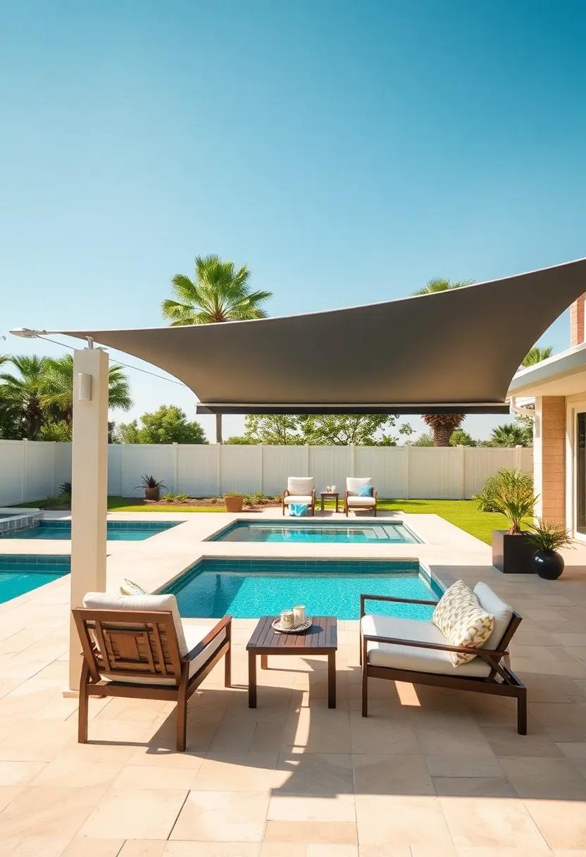 Imagine a poolside patio with a retractable shade that enhances your summer enjoyment, providing relief from the sun’s intensity while lounging by the water