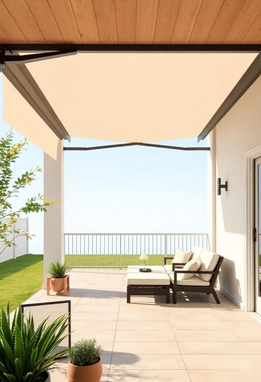 Opt for a sleek,retractable awning that can be hidden away when not in use,maintaining a clean and unobstructed patio view