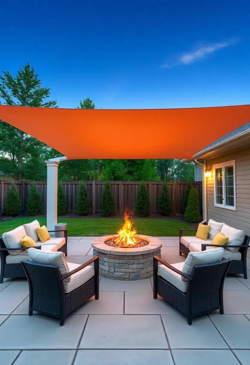 Create a cozy nook in your backyard by setting up a fire pit area underneath a retractable shade. This innovative design allows you to transform your outdoor space into a multifunctional retreat. With the flick of a switch, you can open the shade to let in the starlit sky or close it when the chill of the evening sets in—providing warmth and comfort. A surrounding circle of comfortable seating, layered with soft blankets and decorative pillows, invites friends and family to gather around, share stories, and indulge in the simple joys of togetherness.