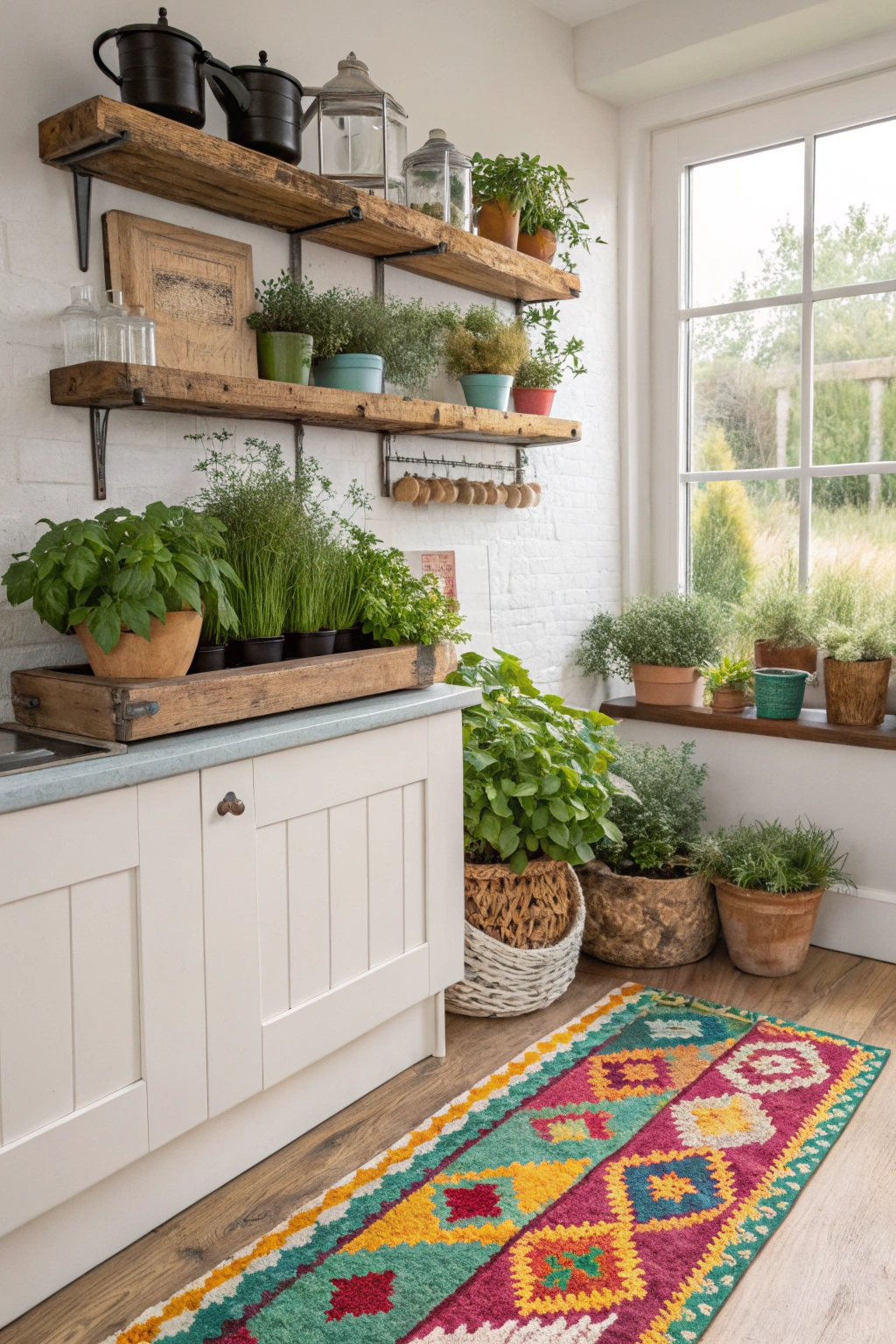Incorporate various potted plants to breathe life into your kitchen. Ideas include: