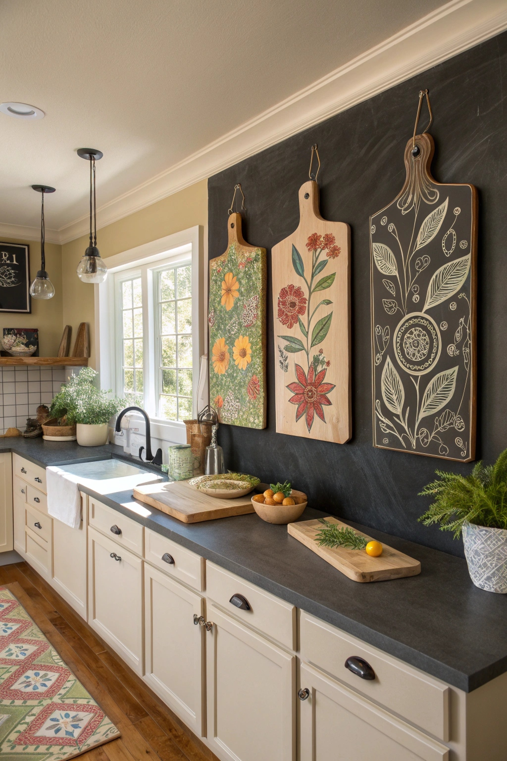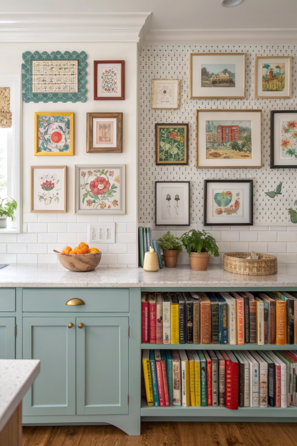 Transform an empty wall into a captivating gallery that reflects your culinary passions. Ideas include: