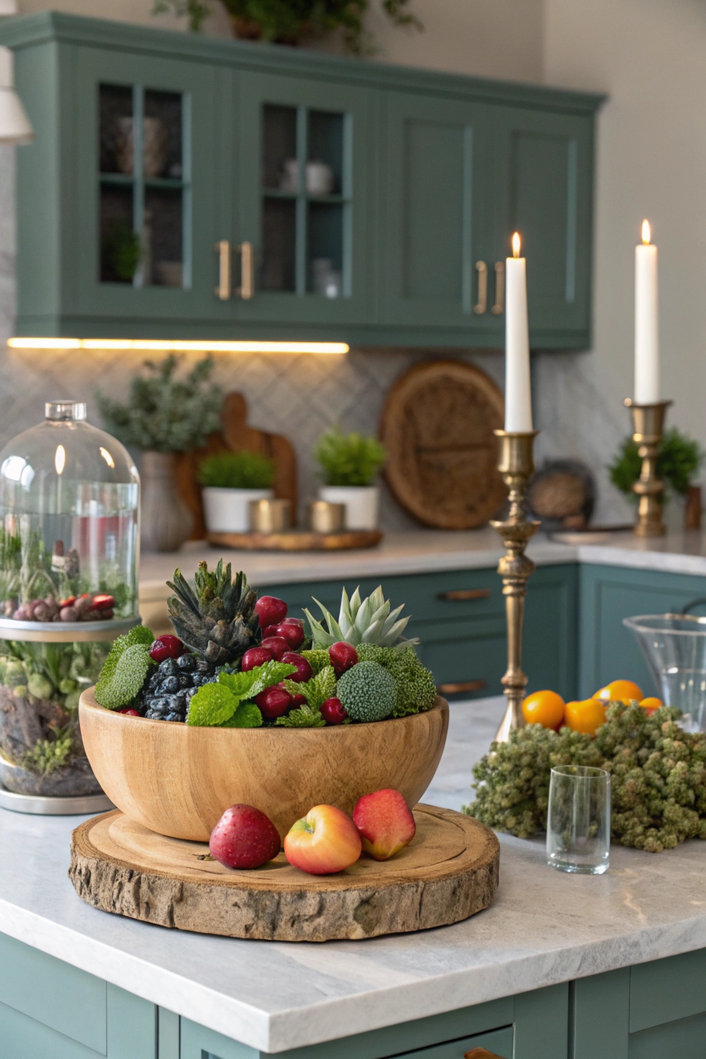 Finishing touches like chic table centerpieces can elevate your kitchen’s ambiance. Consider: