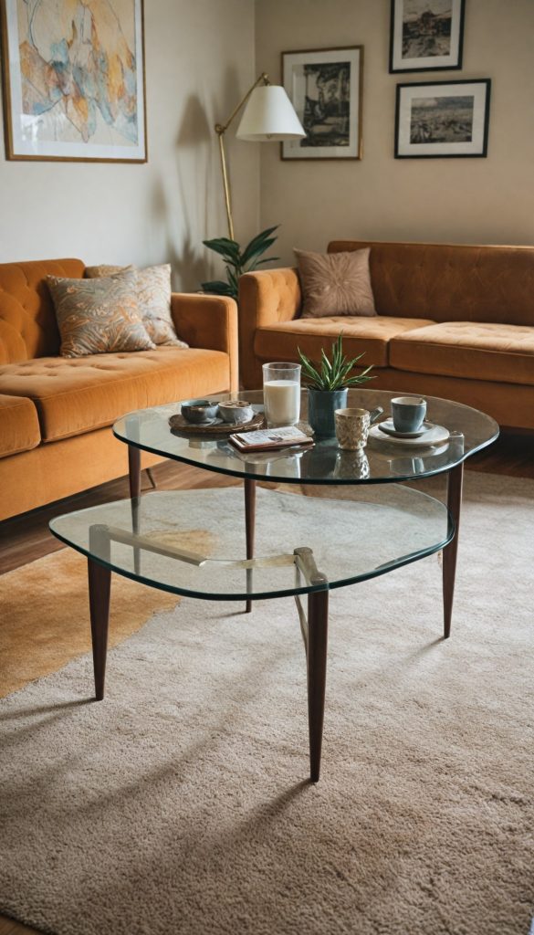 A living room inspired by the 60s is incomplete without a coffee table that stands out. Opt for pieces featuring unconventional shapes and a blend of materials like tempered glass and brushed metal. These tables serve both practical and aesthetic purposes, acting as sculptural centerpieces.