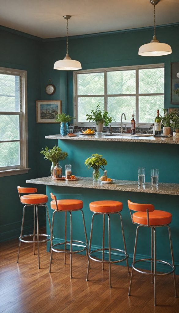 Add a splash of retro charm to your kitchen island or bar area with stools that feature bold hues and sturdy metal frames. These stools are ideal for casual dining and socializing.