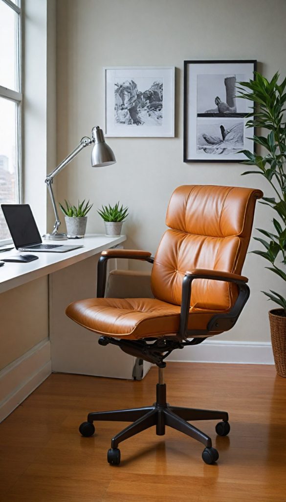 Complement your desk with ergonomic office chairs that blend comfort with sleek design. Upholstery in leather or fabric, especially in vibrant colors, keeps your workspace inviting and professional.