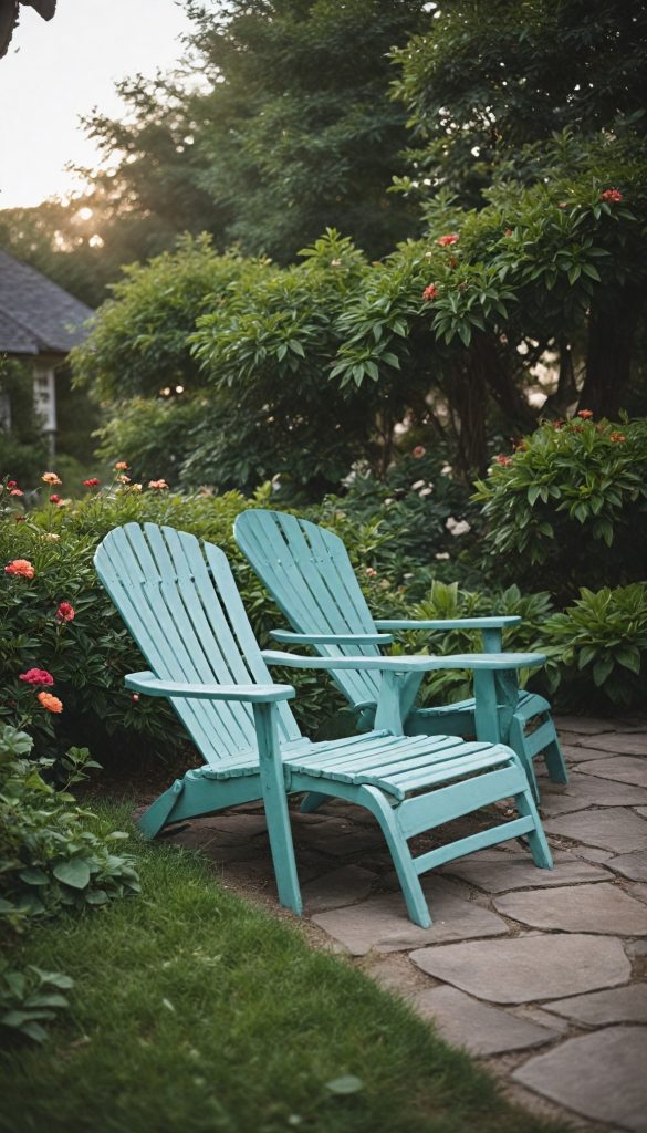 Enhance your garden with chairs featuring curved backs and lively colors. These vintage-inspired seats are perfect for relaxing outdoors while adding a whimsical touch.