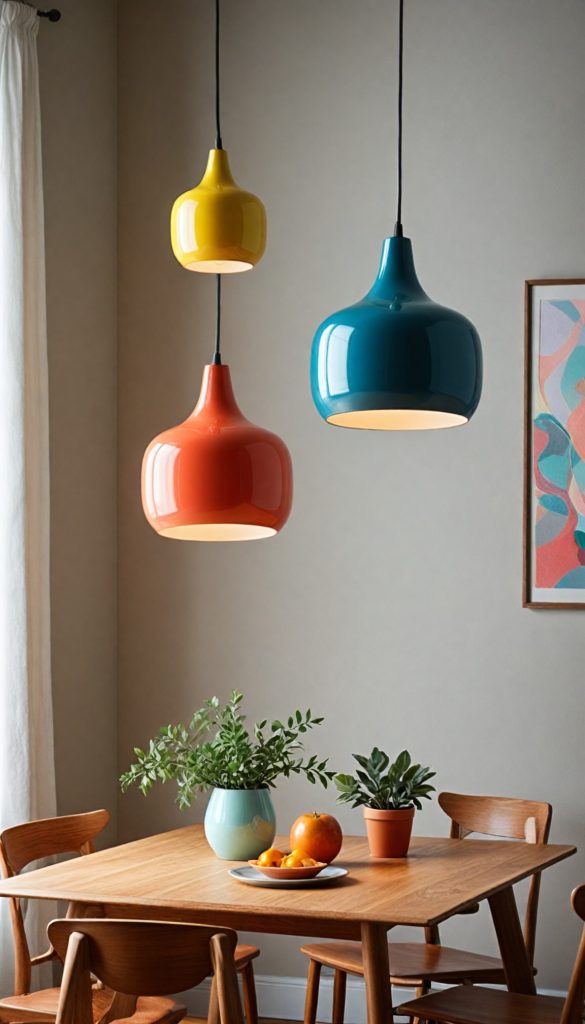 Illuminate your interiors with pendant lights that showcase sleek, geometric shapes and mixed materials. Ideal for hanging above dining areas or living rooms, these fixtures add a sophisticated retro vibe.