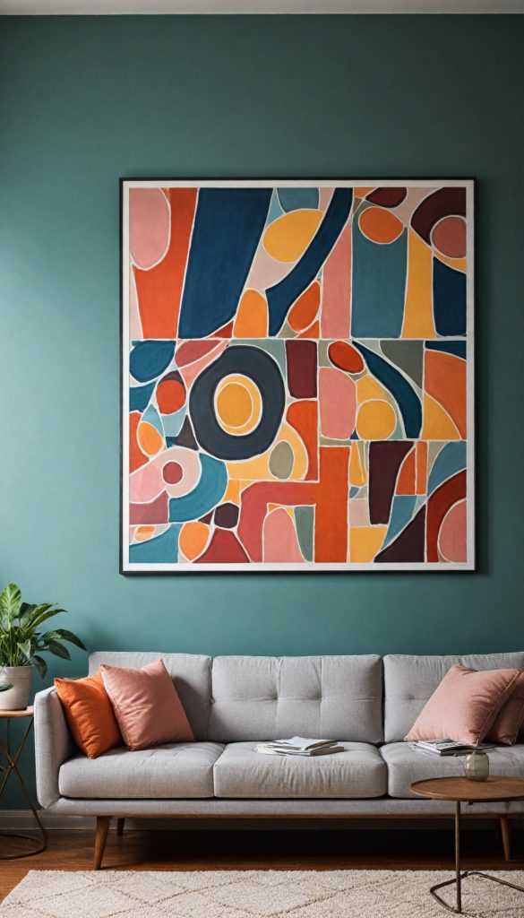Inject personality into your rooms with wall art inspired by the 60s, featuring abstract and geometric motifs. A large statement piece above your sofa or bed can anchor the room’s design.