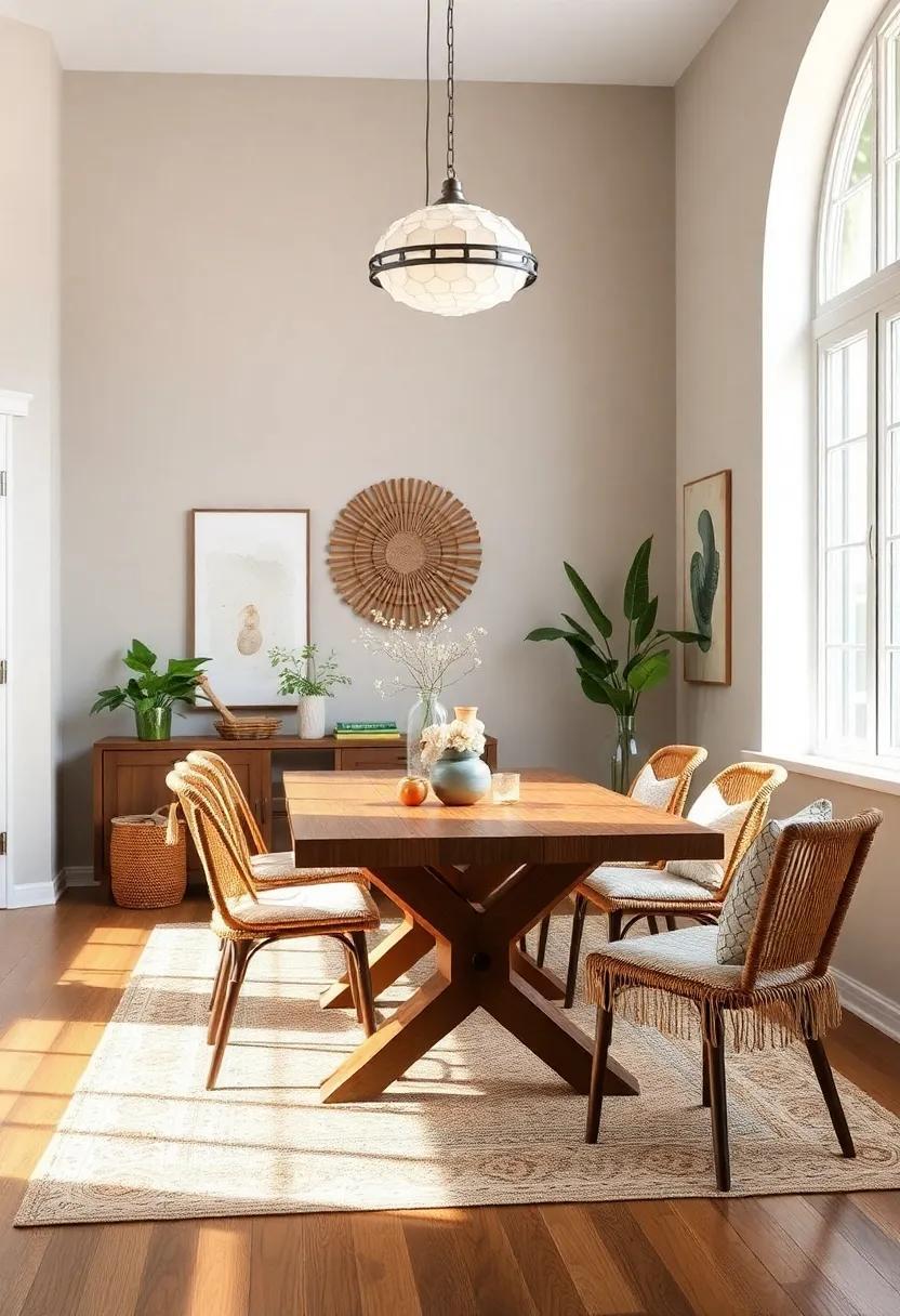 Moreover, think about creating a gallery wall that features a mix of art prints and photographs from past trips. use frames in various materials and finishes to enhance that eclectic boho vibe.Don’t forget to incorporate woven textiles, such as a striking piece of fabric draped over a chair or table, to add warmth and texture. This blend of elements will not only personalize your space but also encourage guests to share their travel stories, enriching the dining experience and making every meal feel like a party of life’s adventures.