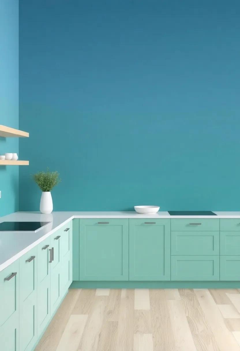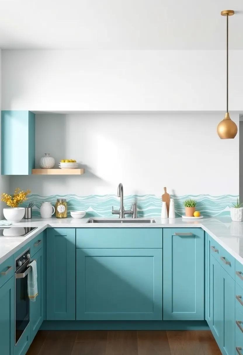 Transform your kitchen into a coastal haven by incorporating a stunning gradient of blues,greens,and creams that evoke the serene palette of the ocean. Start with deep navy or seafoam green cabinets at the base, a color that mimics the depths of the sea. As you move upward, gradually introduce aqua blues and soft turquoise until you reach a soft, creamy white on your ceiling and trim. This seamless ombre effect can be achieved using paint or tiles, allowing your cooking space to flow like waves lapping against the shore.