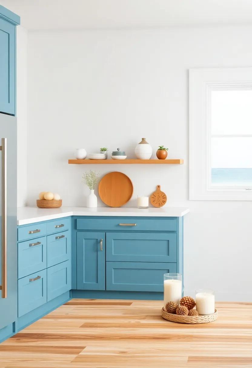 Elevate your kitchen’s coastal charm while keeping it elegantly simple, allowing serenity and beauty to shine through without overwhelming the senses.
