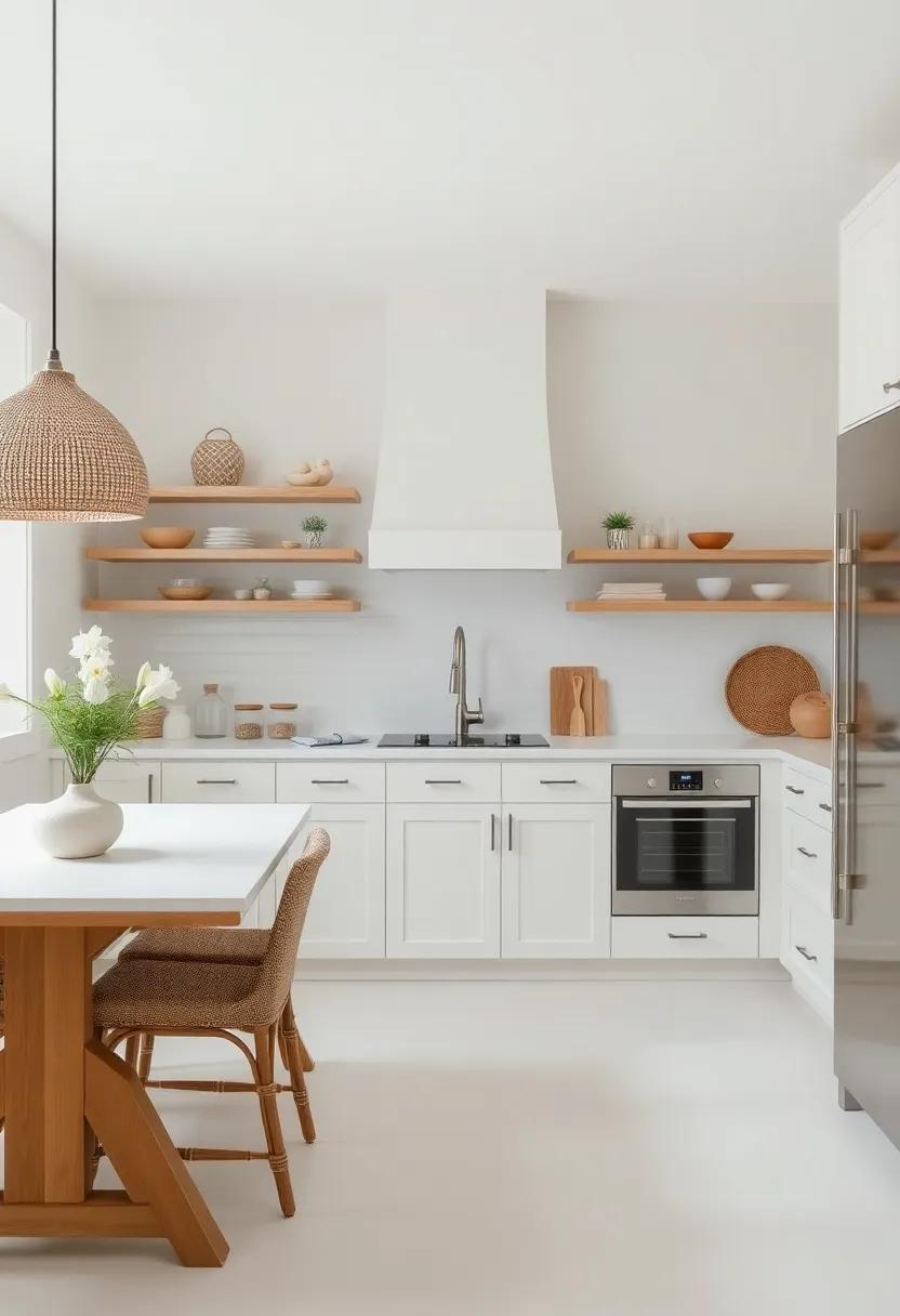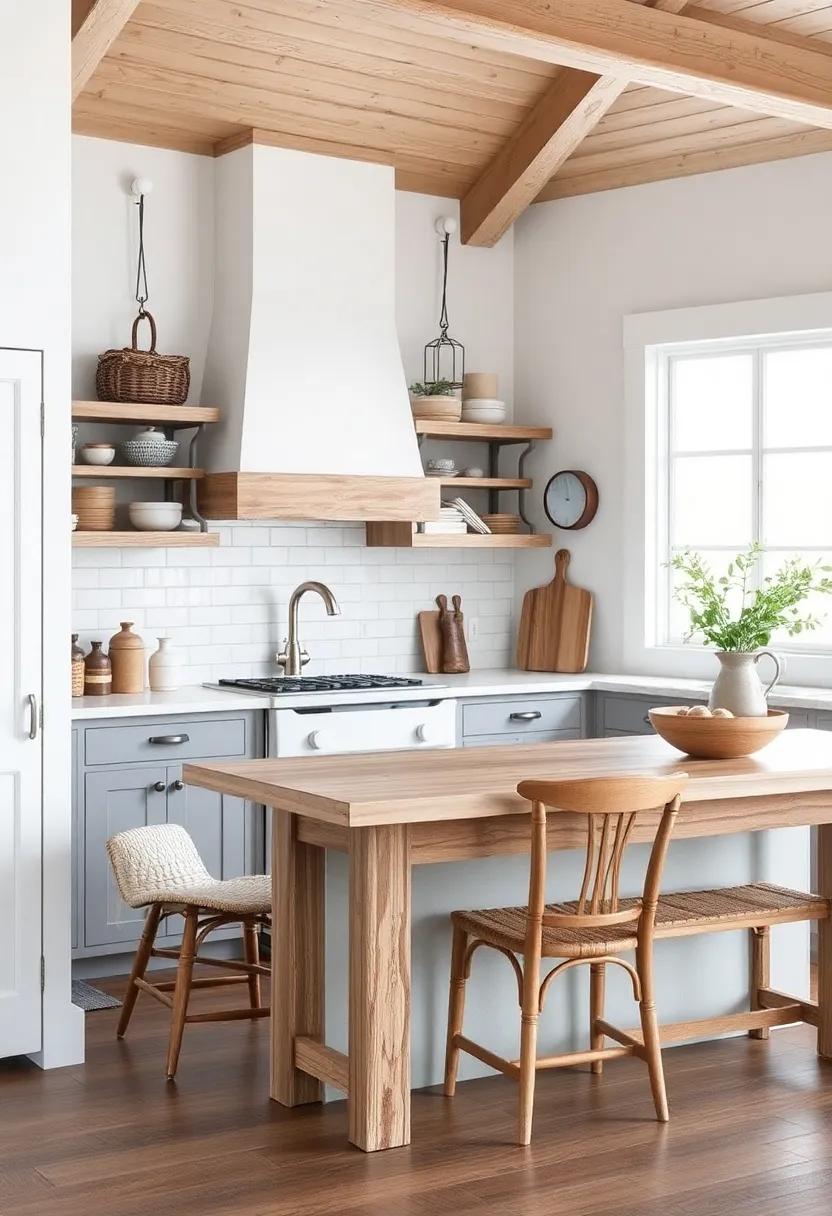 Whitewashed Finishes: Incorporate whitewashed wood on cabinets or furniture to instantly add a relaxed, sun-bleached look to your kitchen