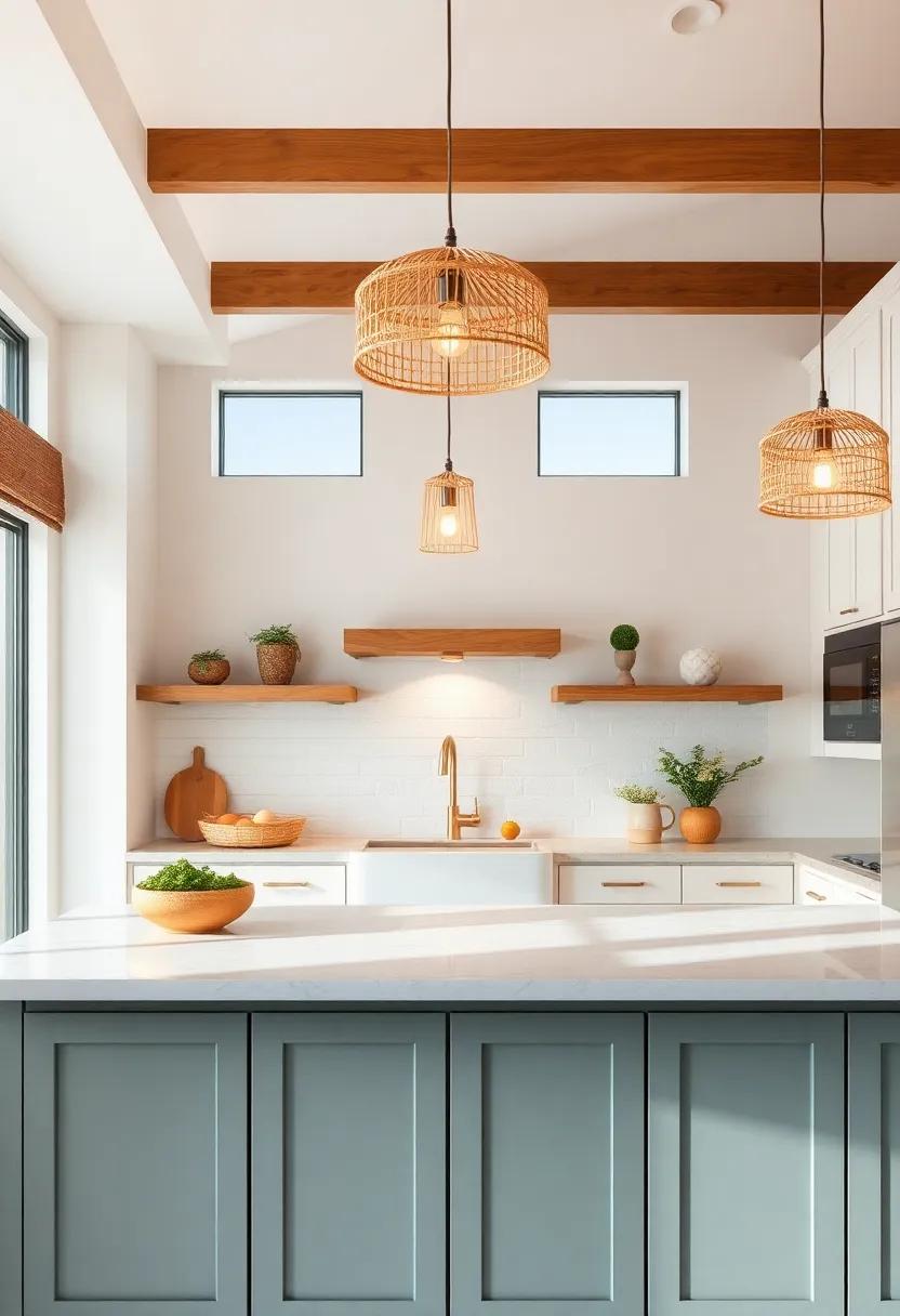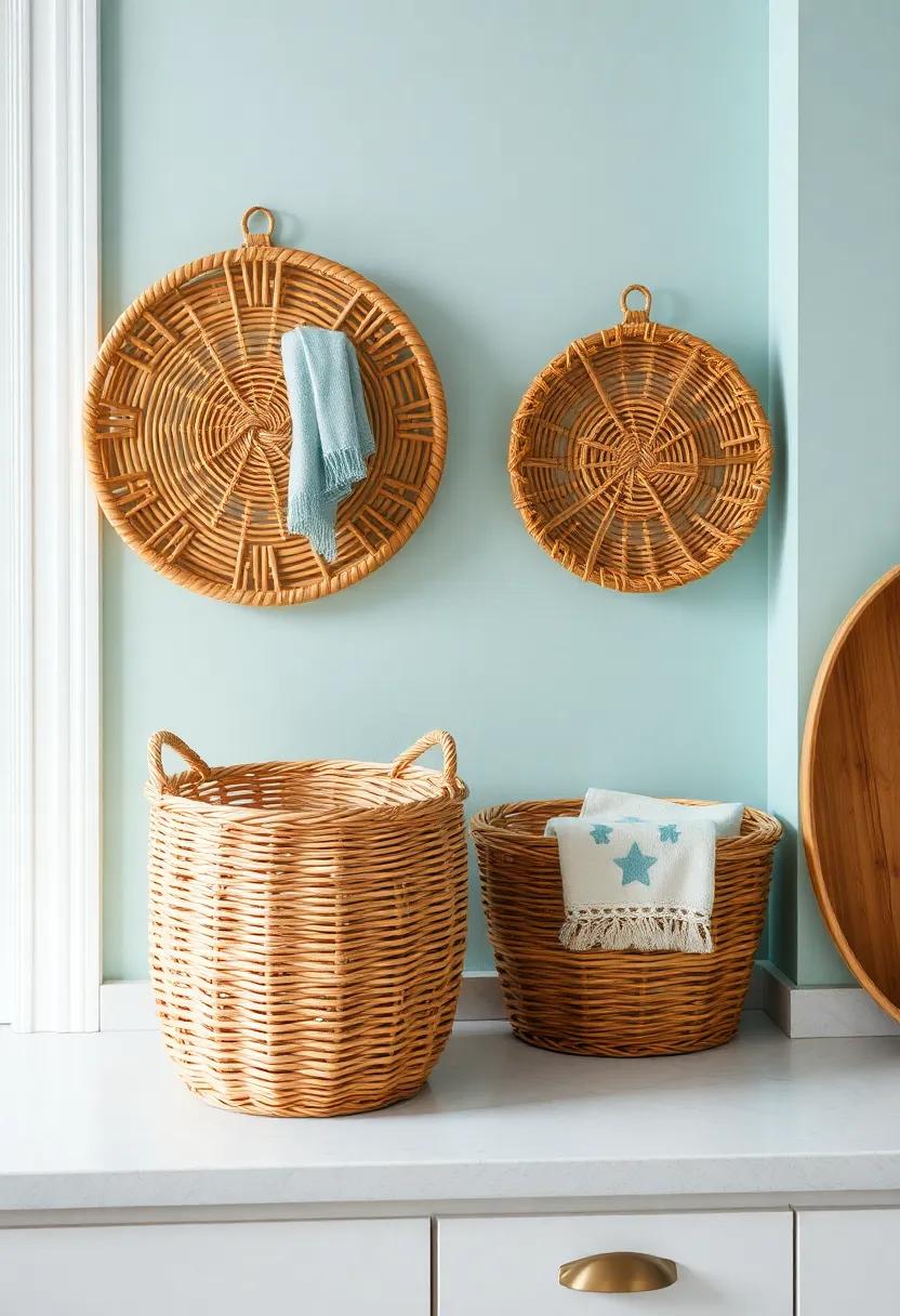 Wicker Baskets: Use wicker baskets for storage and decoration, reminiscent of beach trips, to keep your kitchen both practical and stylish